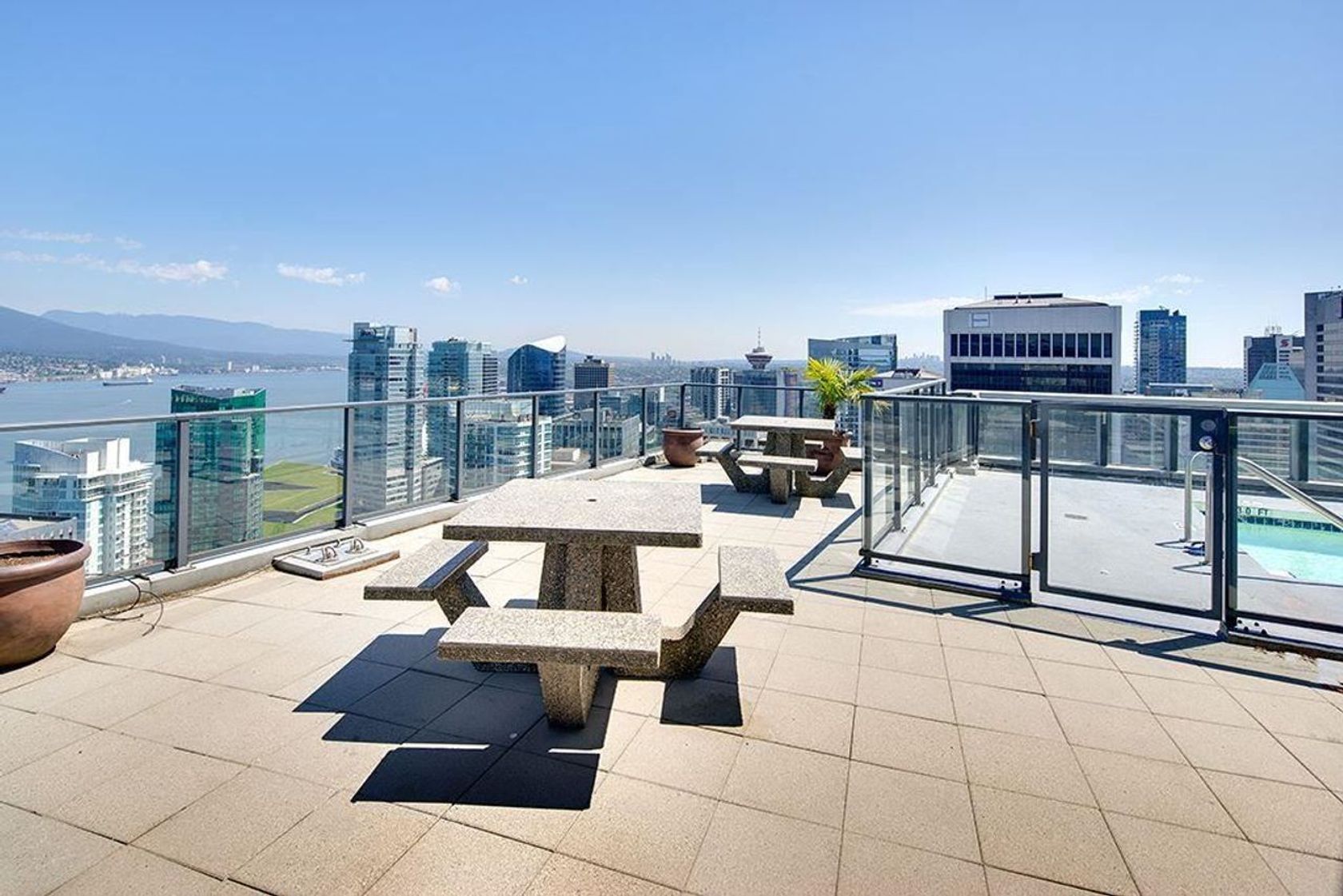 THE MELVILLE in the heart of Coal Harbour with beautiful city and water views as well as 360 degree ocean/mountain views from the roof top pool and terrace. This beautiful spacious 3bed / 3bath (3rd bed is a large den/office that can be converted into bedroom) SW unit offers large balcony, open layout, plenty of storage. Enjoy an airy feeling with 9ft ceilings, A/C, modern kitchen S/S appliances, hardwood flooring and floor to ceiling windows. Relax while you enjoy Water, city and mountain views from this one of kind condo. The Melville is known for its amazing amenities that include sky garden, outdoor pool, hot tub, sauna, party room, gym, 24hrs concierge. This unit comes with 2 parking spots and 1 over sized locker. Steps to all shopping, grocery stores, seawall and Stanley Park.