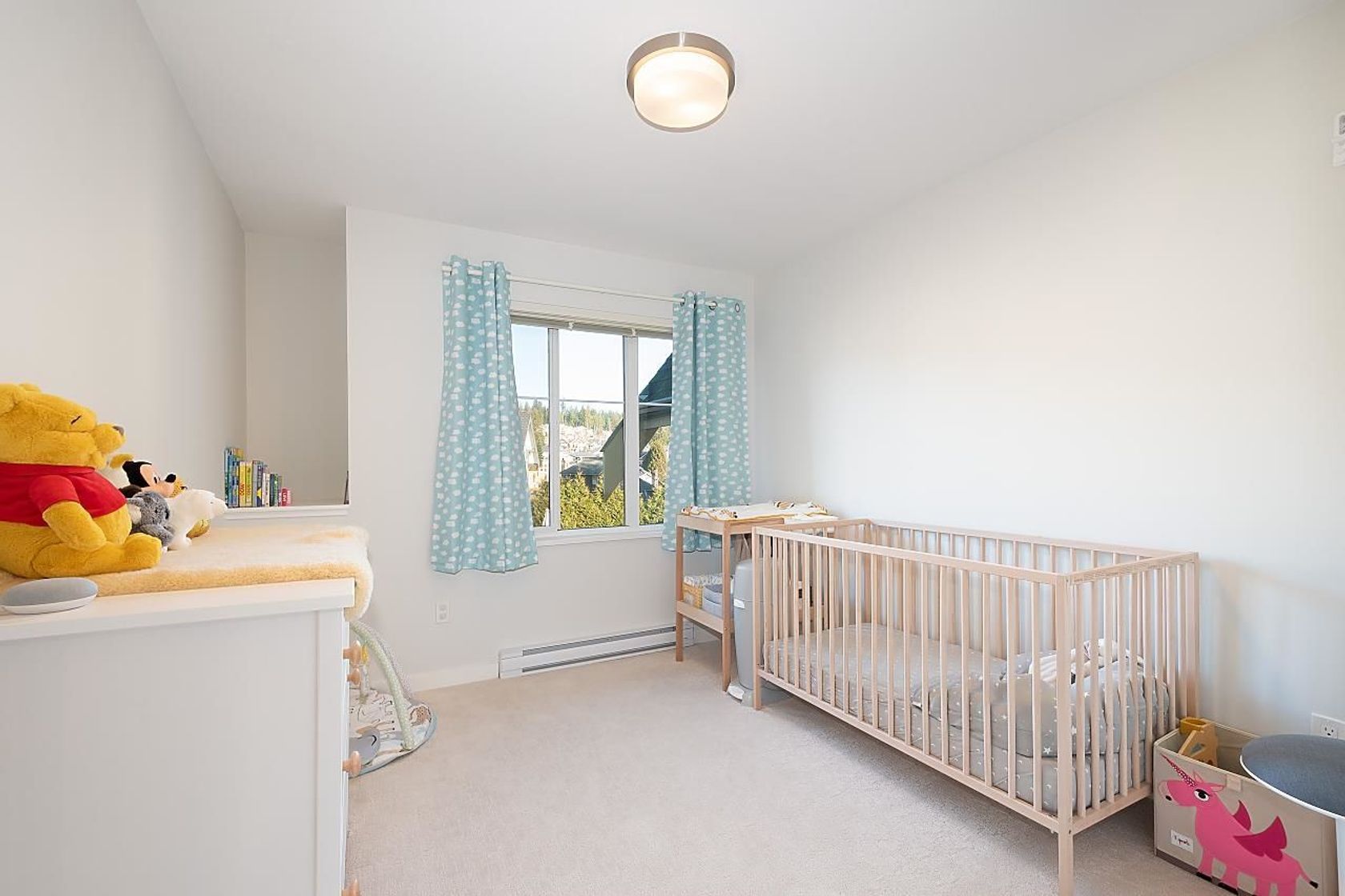 Open House cancelled. Welcome to Hadleigh on the Park in Burke Mountain, a collection of executive Tudor-style townhomes & duplexes built by Polygon located at the end of a cul-de-sac. This spacious 4 Bed, 4.5 Bath townhome feels like a single-family home & is measured at over 2200 sq ft with beautiful mountain views. Some of the features of your new home include stainless steel & integrated appliances, multiple ensuites, main bedroom ensuite comes with both a spa-shower & a soaker tub, gas hookup on the patio & attached 2 car garage. Additionally, this home is roughed in for a central vac system & has plenty of upgrades like custom built-ins, walk-in closet, garage flooring, slat wall, smart thermostats & more. Open House Cancelled.