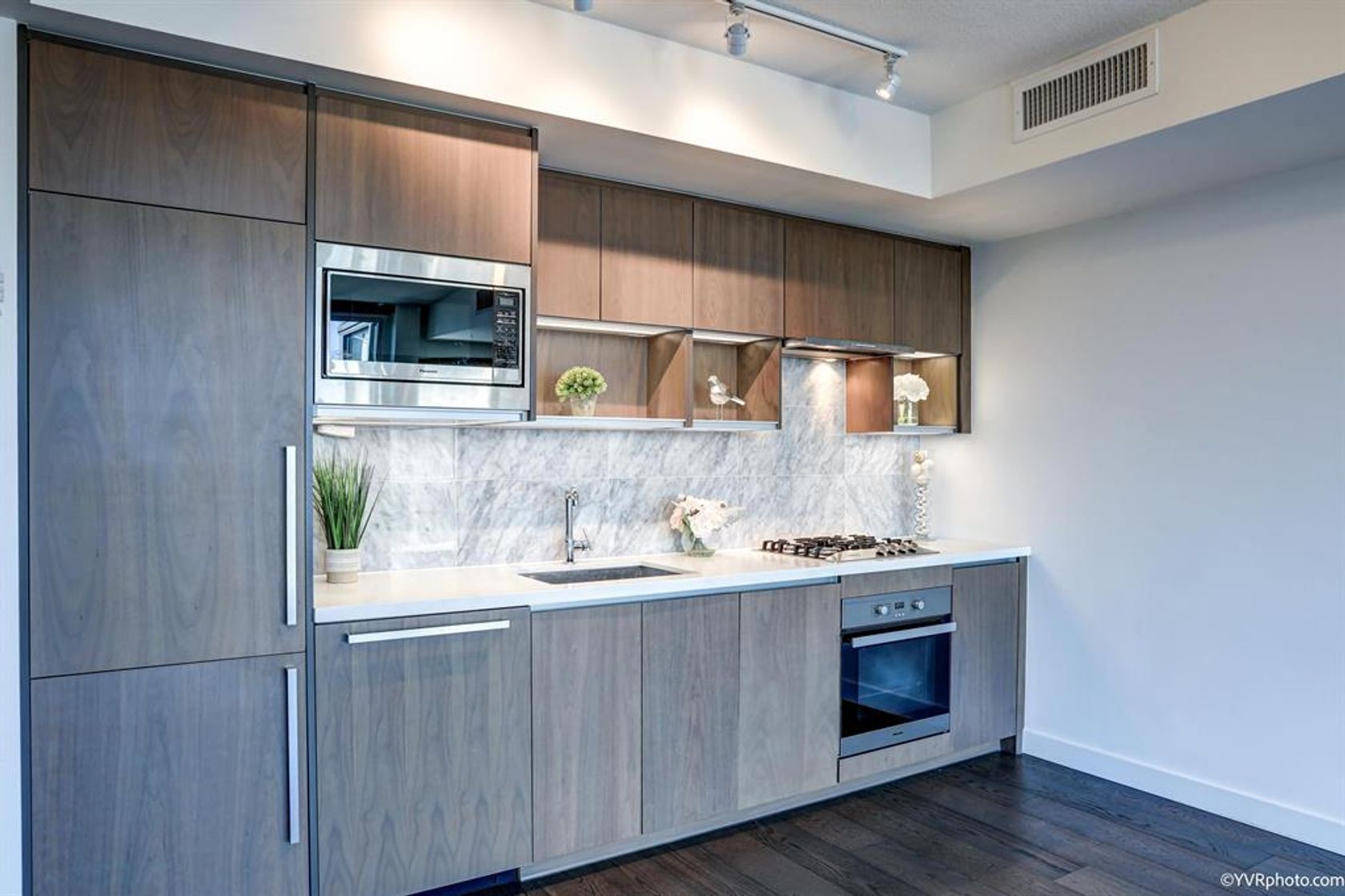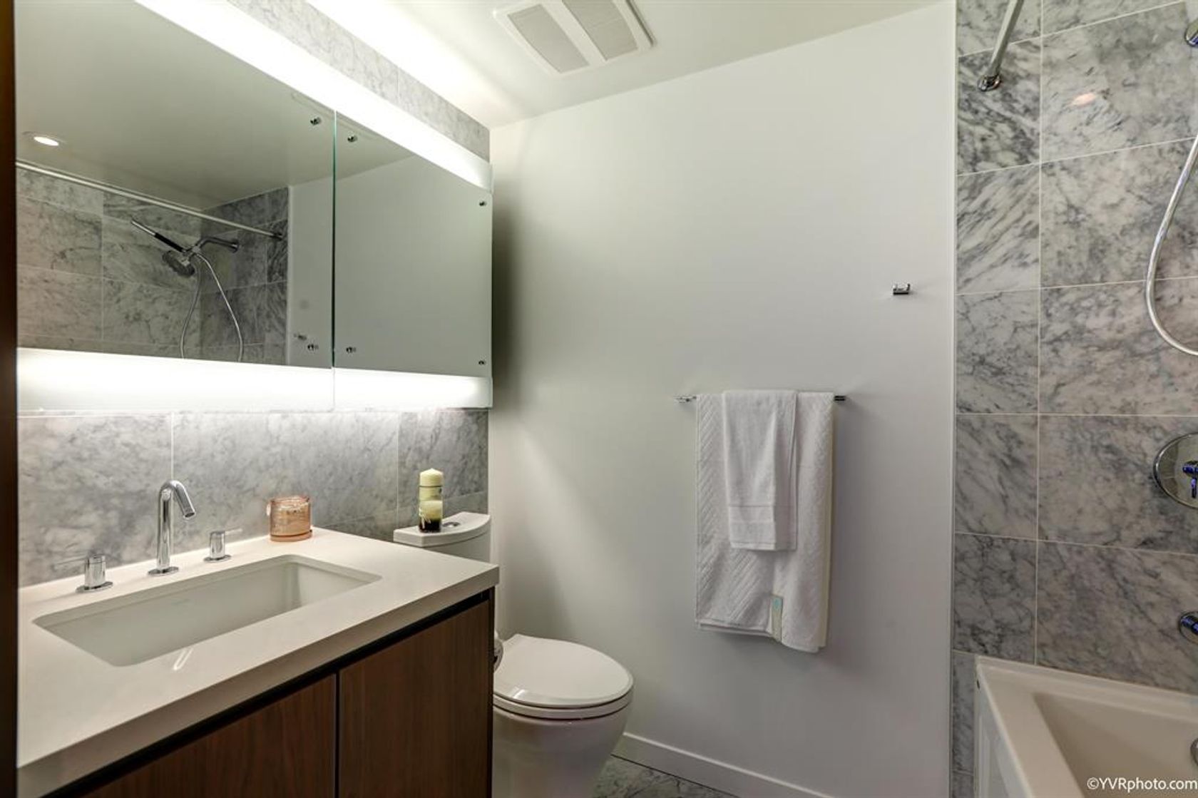 Luxurious contemporary Penthouse floor unit in One Pacific with fantastic water view built by Concord Pacific located at the central downtown. Air-Conditioning 1 bedroom & den plus Flax Room with large windows with False Creek views. Premium quality finishes include quartz stone countertop, engineered hardwood flooring, marble backsplash, Kohler faucet and luxury Miele appliances. This iconic concrete & glass luxury building offers residents a top living experience and 24-hour concierge service. The building features 5-star resort style amenities including glass bottom heated swimming pool, gym, sauna, hot tub party room, roof top garden with outdoor BBQ and etc. 1 EV parking and 1 locker included.