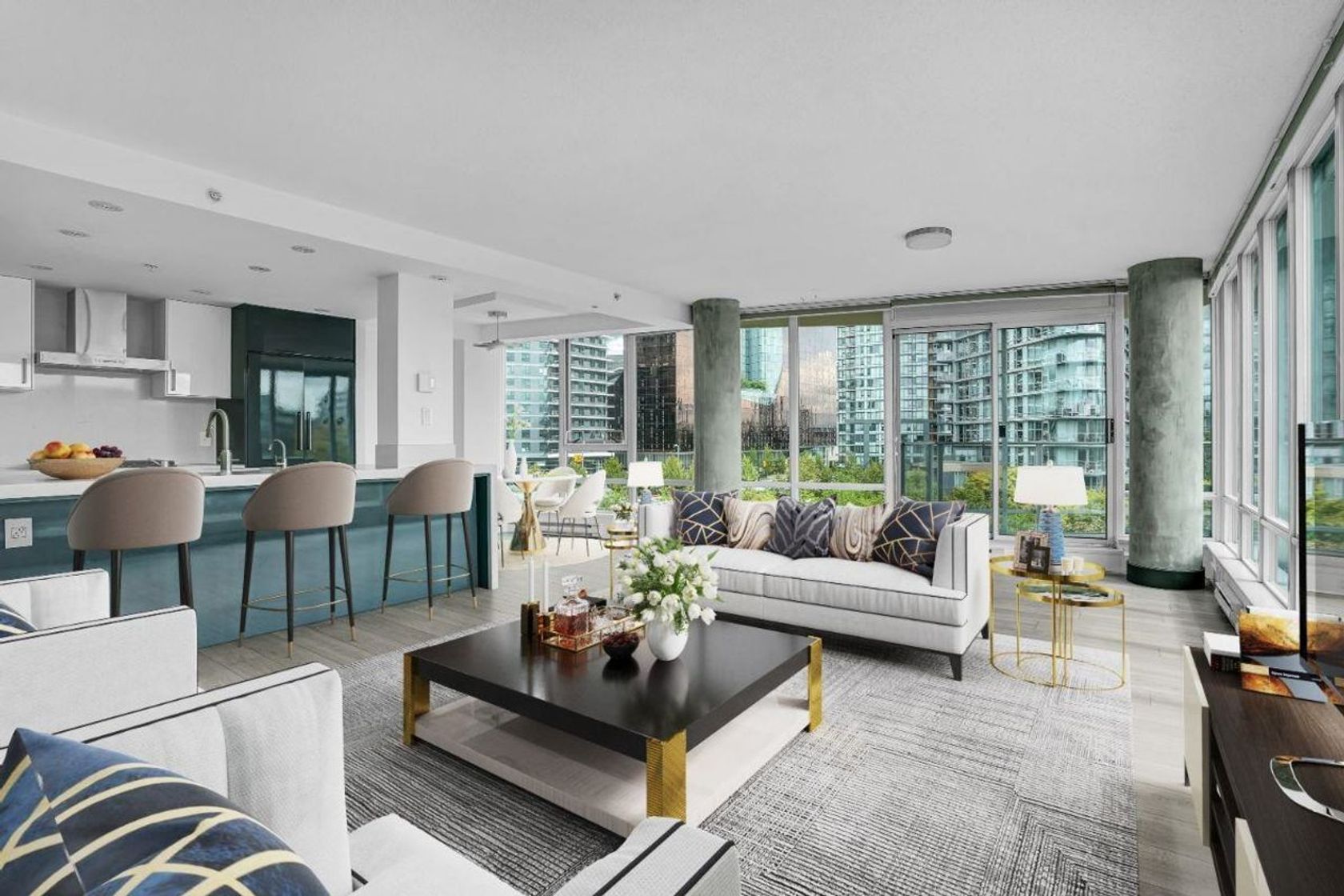Enjoy stunning unobstructed views of false creek from this fully renovated 2 bedroom, 2 bathroom home. Chef's kitchen features gas range, s/s appliances, plenty of cupboard space and well sized kitchen island. Floor to ceiling windows offer plenty of natural light. Entertaining is a breeze in this generous open concept living/dining space backs onto patio with views BBQ's allowed! Sought after Coopers Pointe offers unparalleled amenities with the Espirit club including indoor lap pool, hot tub, steam and sauna, party room, theatre, bowling alley, yoga room, well equipped gyms and access to kayaks. Unbeatable location steps to the sea wall, shops, restaurants and all that yaletown has to offer! Includes 1 parking stall and 1 storage locker.