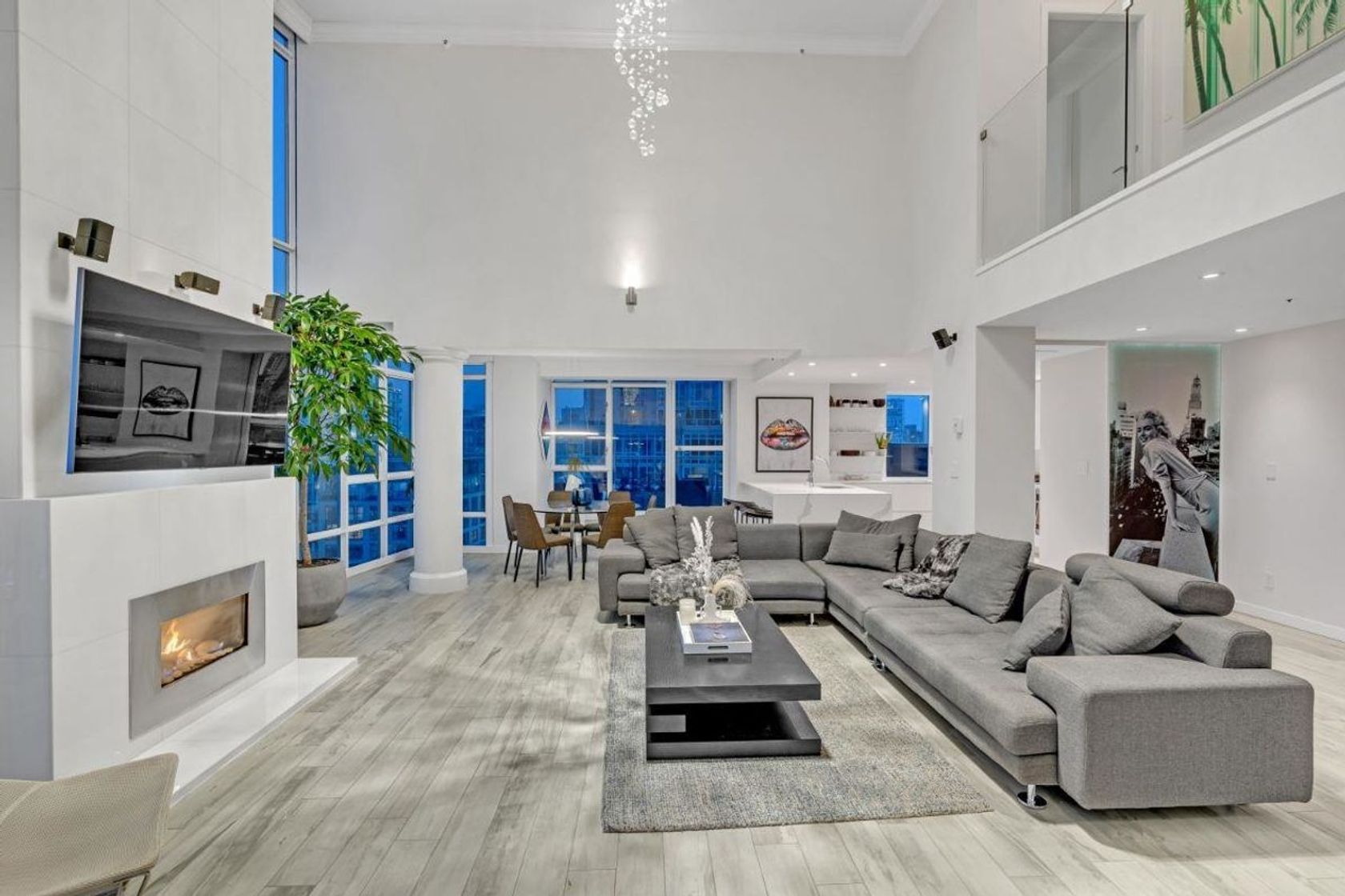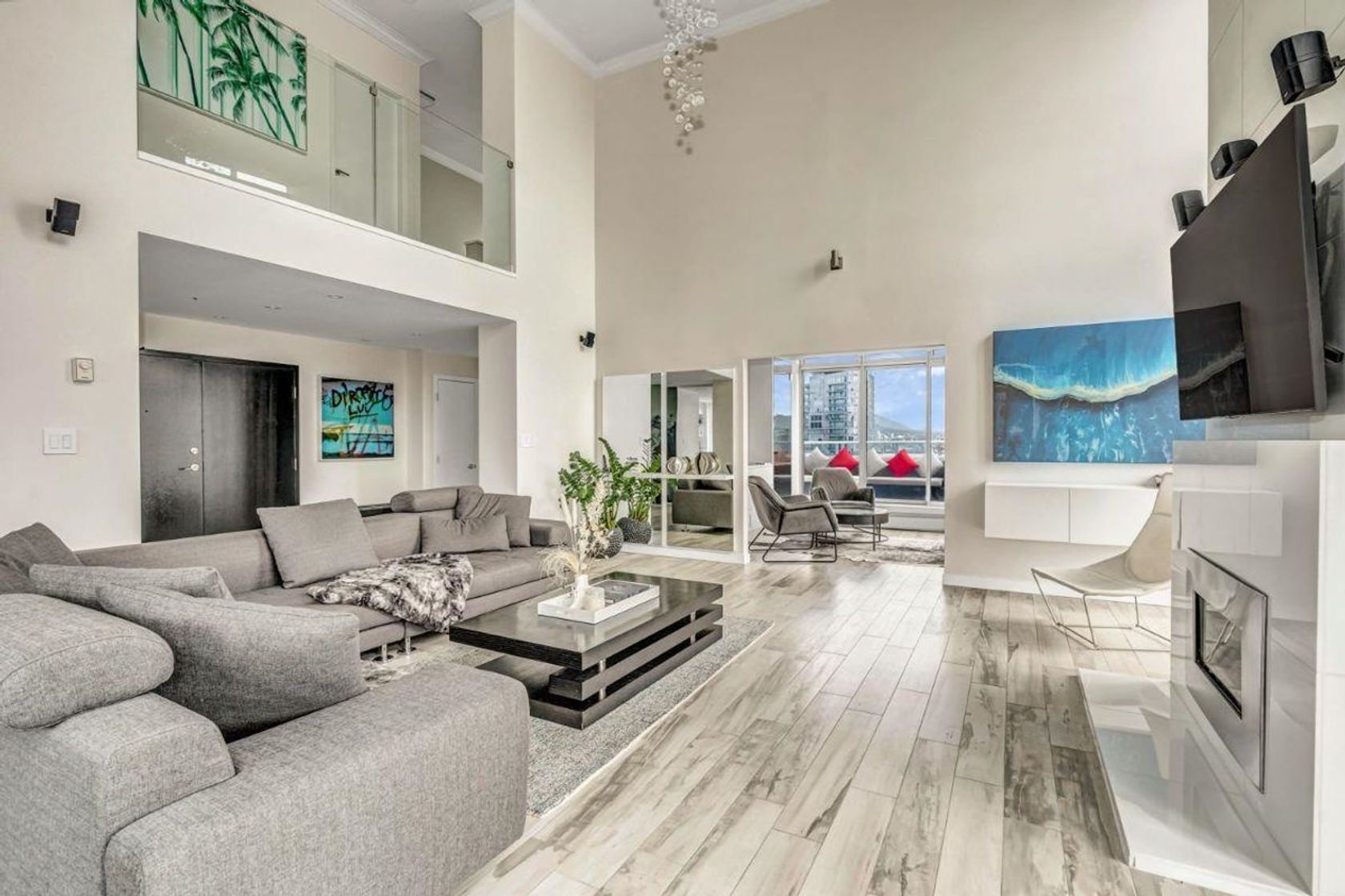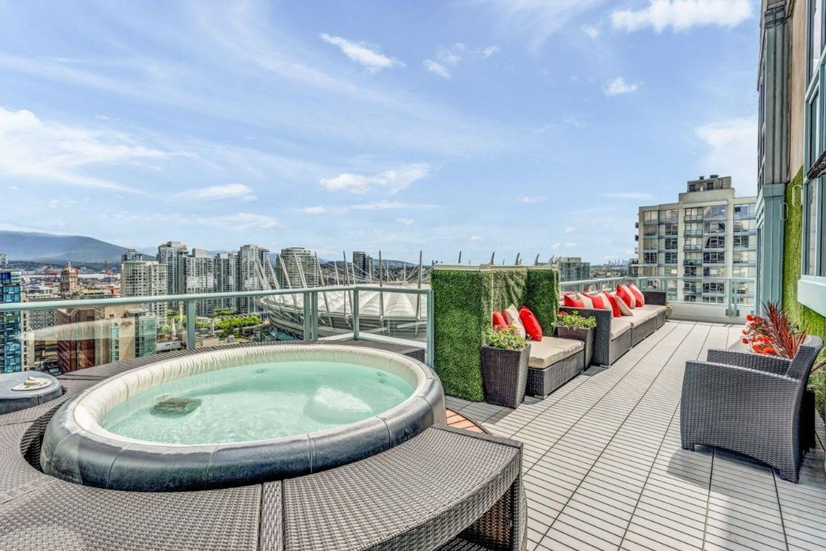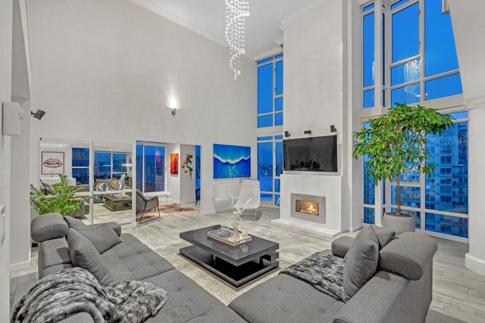 Rare find entertainers dream 2 level Penthouse, half of the entire 30t floor w/ 1000 sq of panoramic patio’s w/ ocean & city views. Bright open floor plan w/ over 2,000 sq.ft of interior living space. Completely renovated lux interior, sprawling entertainment sized rooms, 16 foot ceilings, floor to ceiling windows throughout, miles of wall space for art collectors. Custom kitchen w/ top appliances. Hot tub, & custom built indoor-outdoor serving bar. Large open concept living area w/ media centre. Master Bed w/ floor-ceiling windows, spa-like ensuite. In vibrant Yaletown District, steps to lively restaurants and lounges, sea wall access & walk to Yaletown & Granville Island. 2 secured parking stalls included.