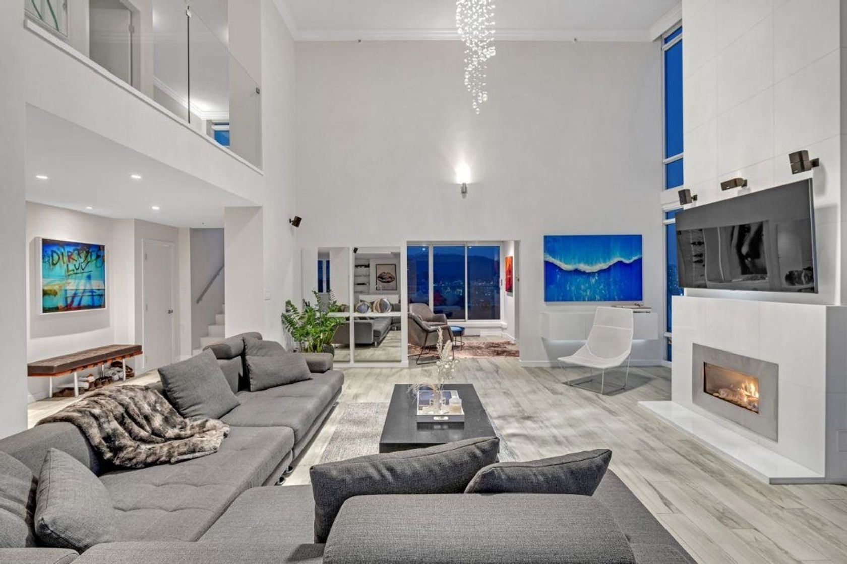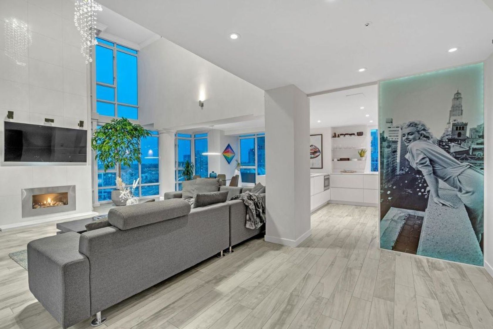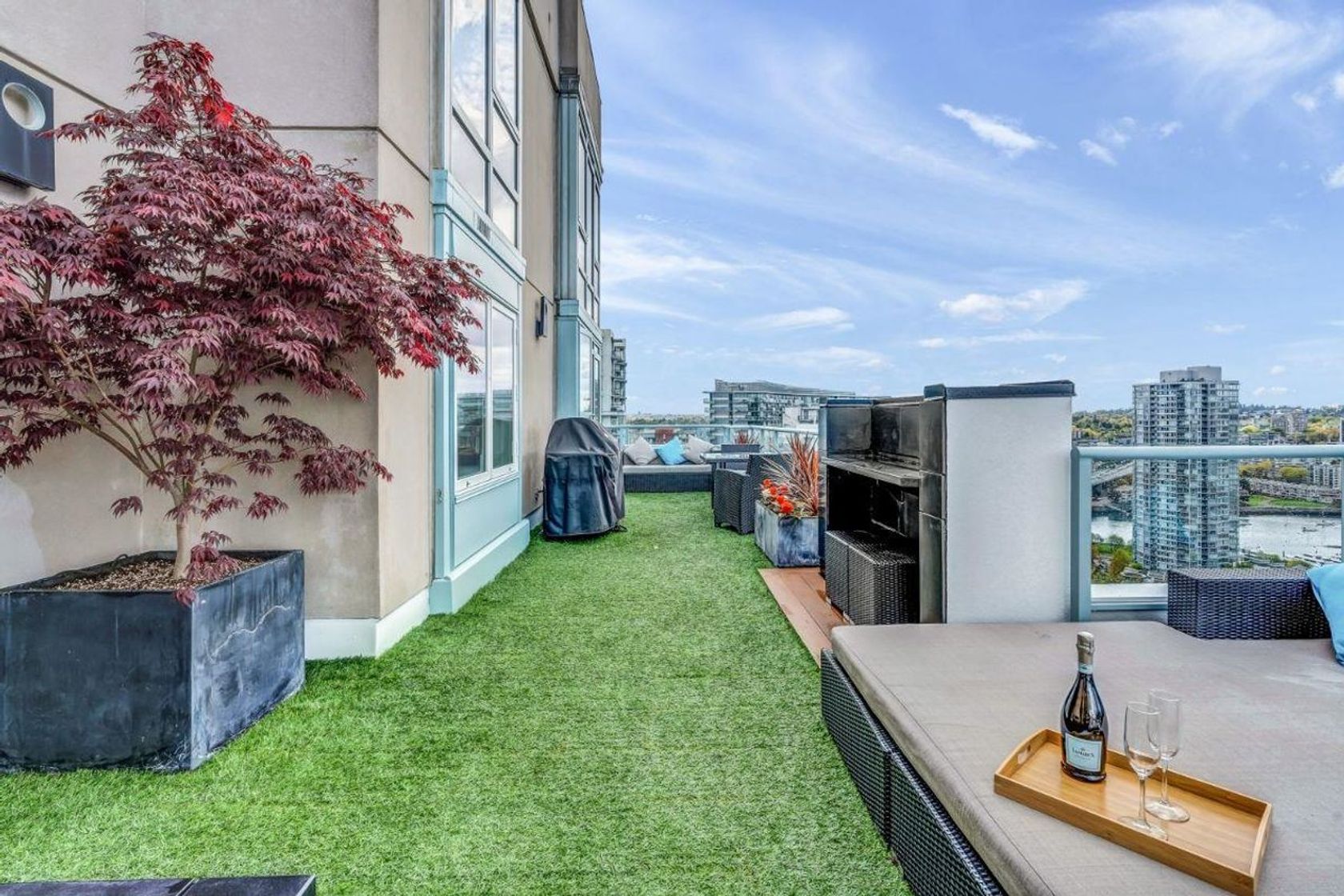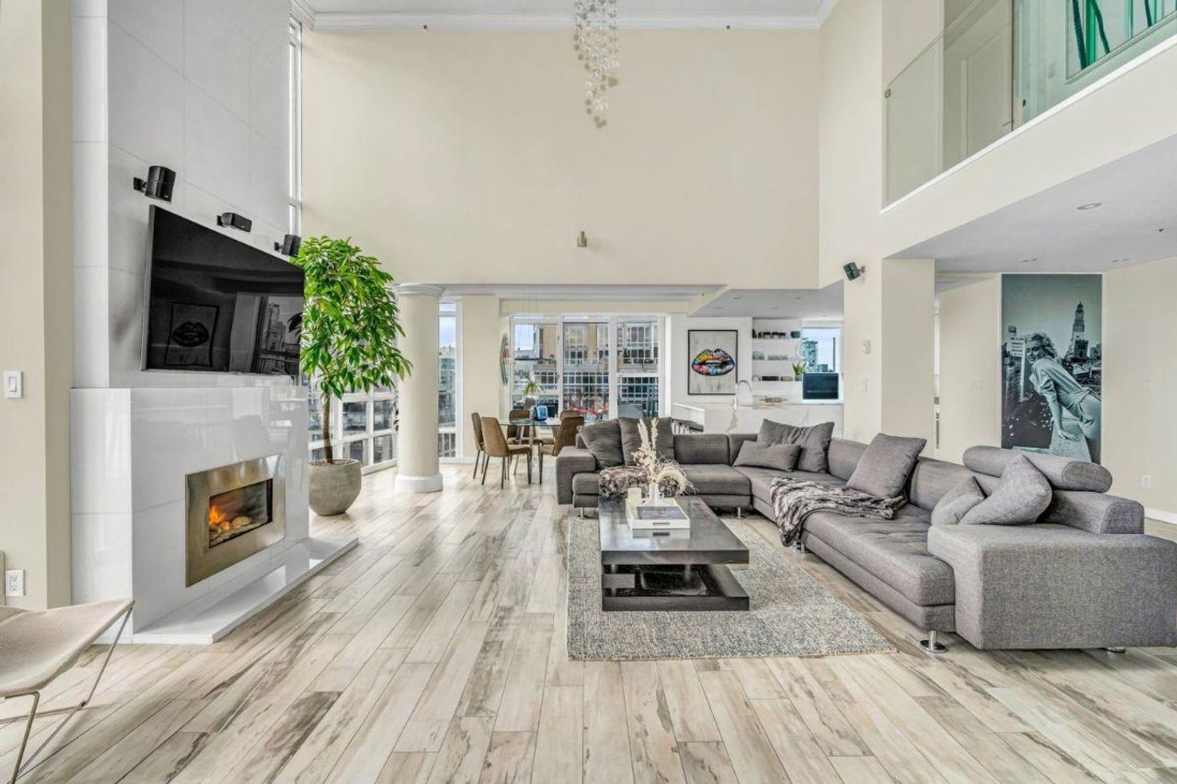 Rare find entertainers dream 2 level Penthouse, half of the entire 30t floor w/ 1000 sq of panoramic patio’s w/ ocean & city views. Bright open floor plan w/ over 2,000 sq.ft of interior living space. Completely renovated lux interior, sprawling entertainment sized rooms, 16 foot ceilings, floor to ceiling windows throughout, miles of wall space for art collectors. Custom kitchen w/ top appliances. Hot tub, & custom built indoor-outdoor serving bar. Large open concept living area w/ media centre. Master Bed w/ floor-ceiling windows, spa-like ensuite. In vibrant Yaletown District, steps to lively restaurants and lounges, sea wall access & walk to Yaletown & Granville Island. 2 secured parking stalls included.