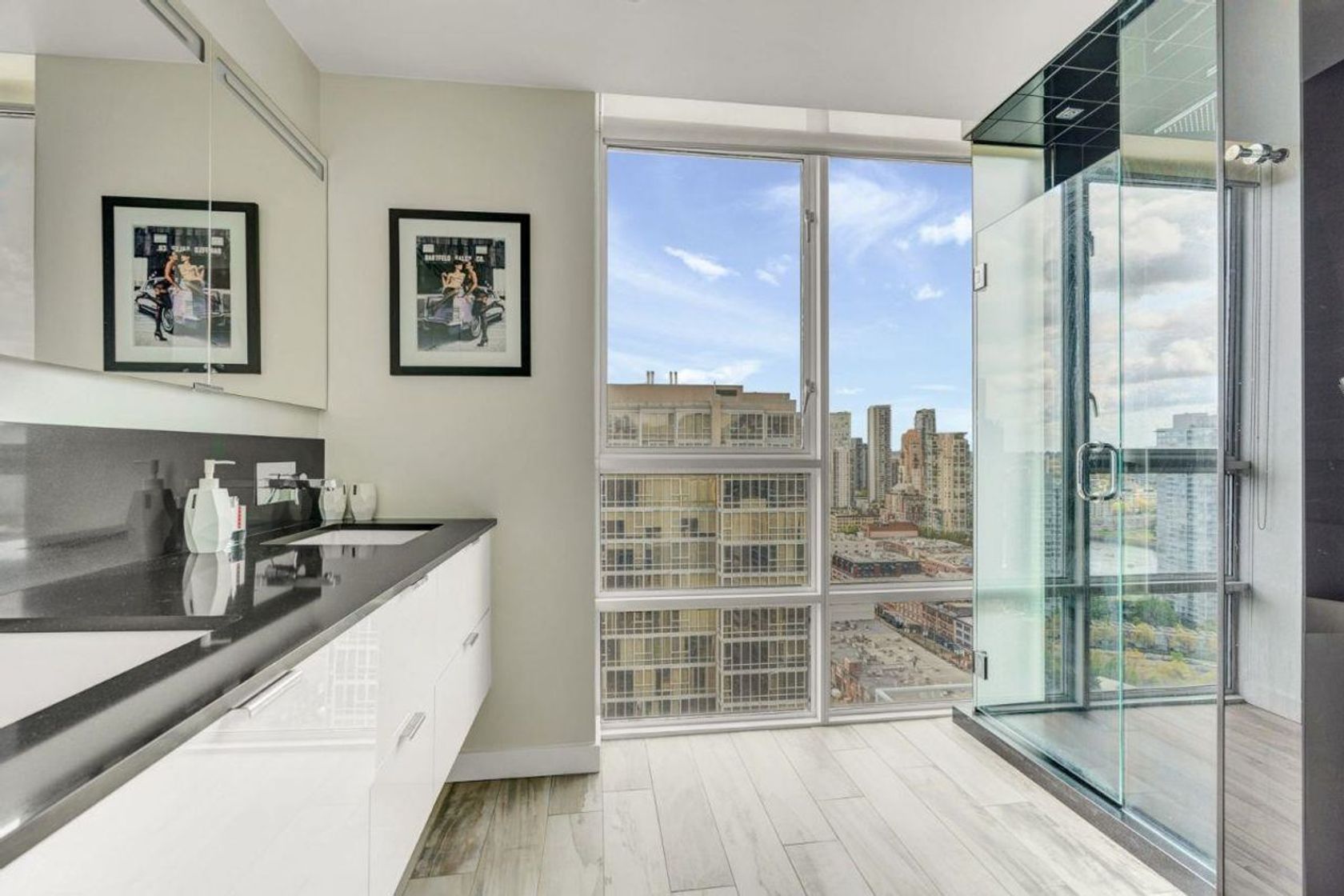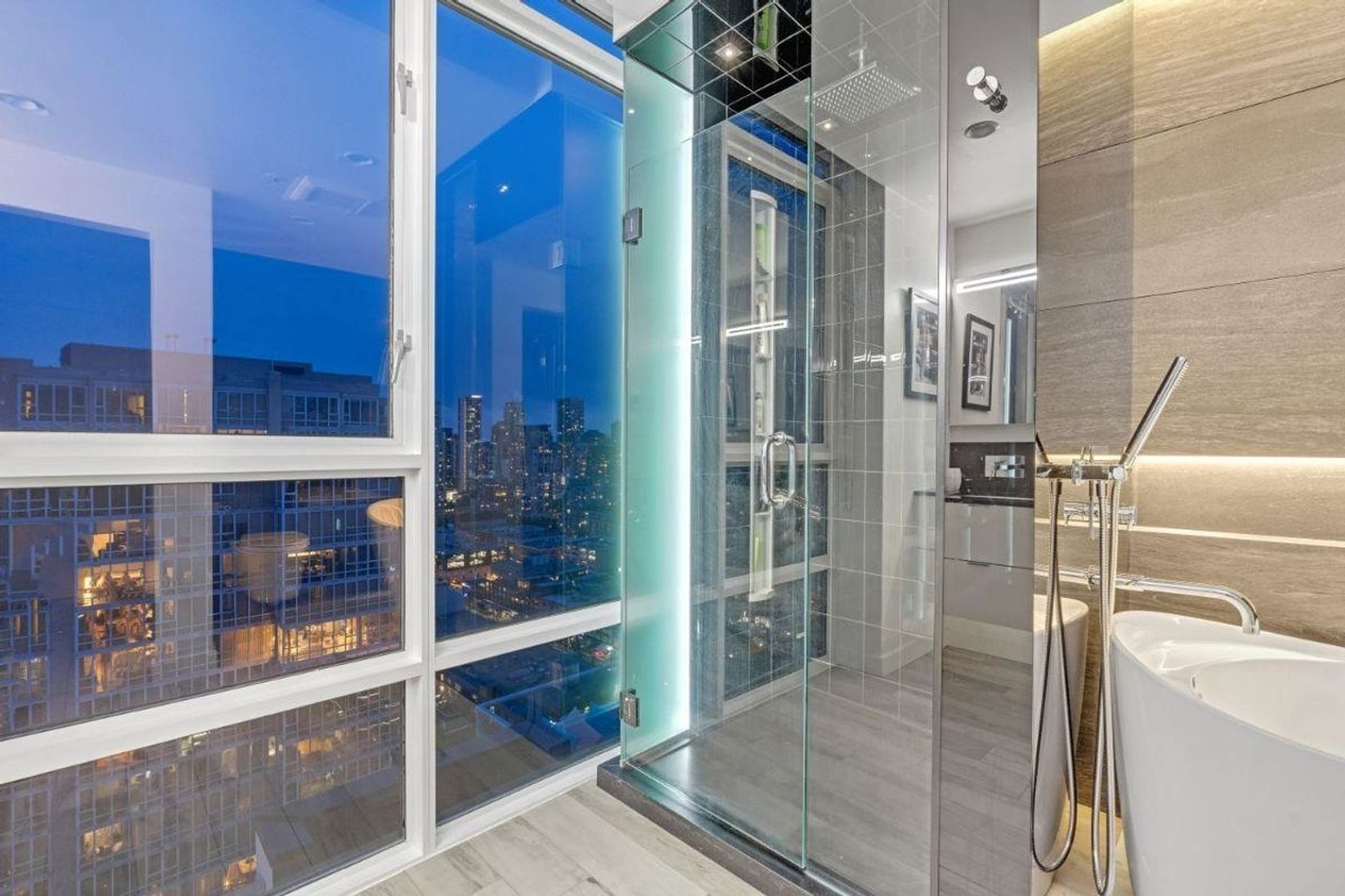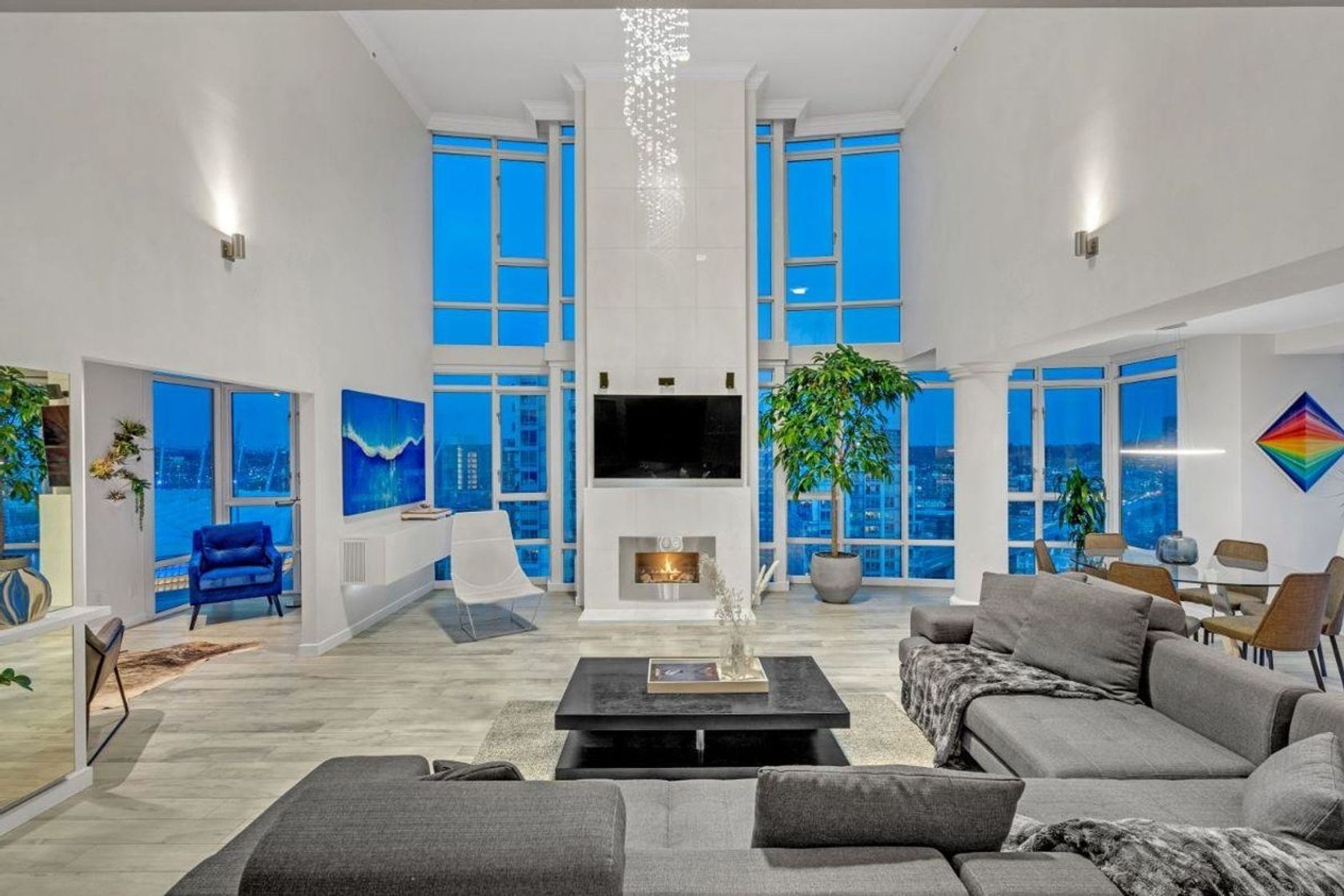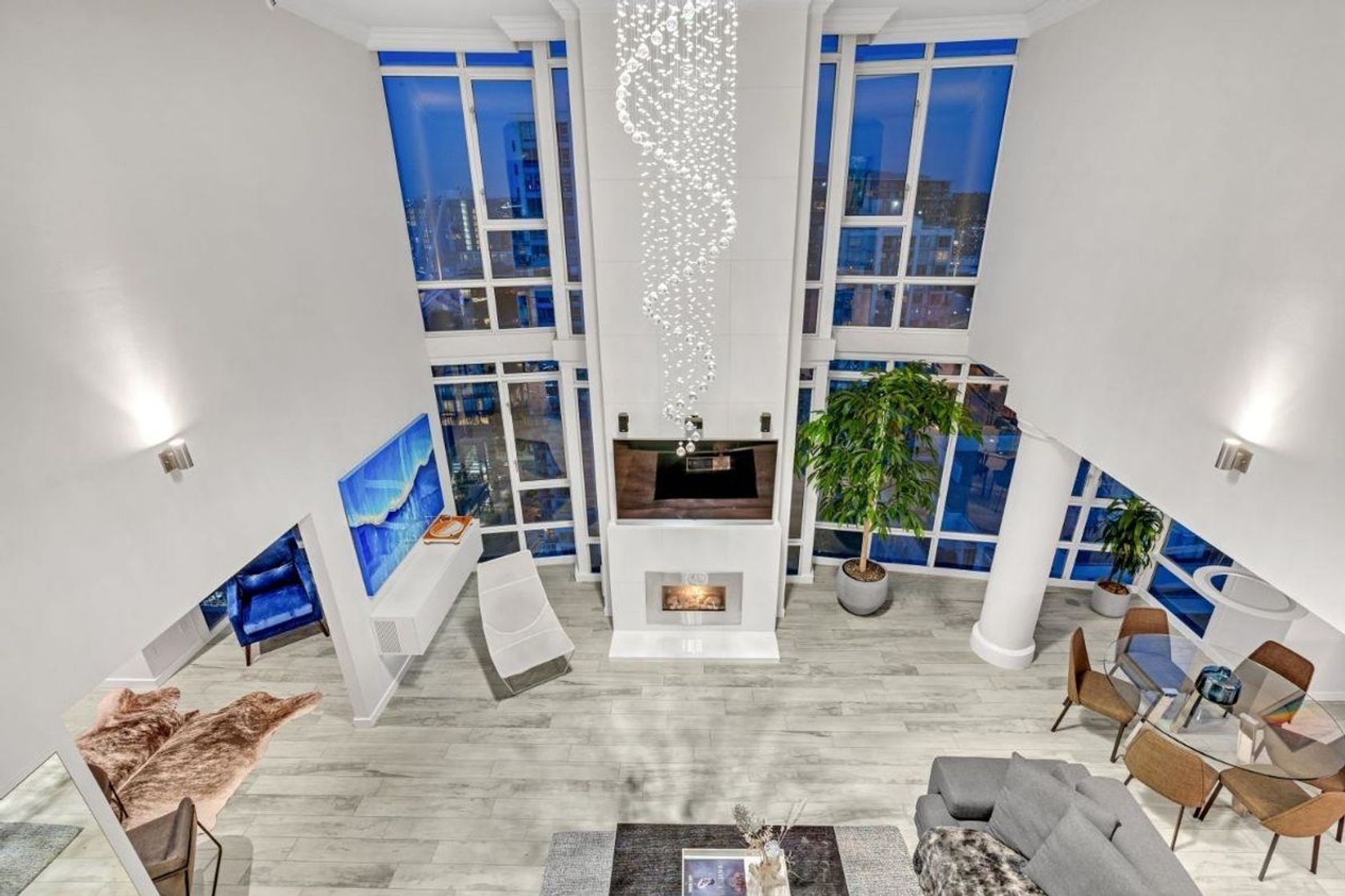 Rare find entertainers dream 2 level Penthouse, half of the entire 30t floor w/ 1000 sq of panoramic patio’s w/ ocean & city views. Bright open floor plan w/ over 2,000 sq.ft of interior living space. Completely renovated lux interior, sprawling entertainment sized rooms, 16 foot ceilings, floor to ceiling windows throughout, miles of wall space for art collectors. Custom kitchen w/ top appliances. Hot tub, & custom built indoor-outdoor serving bar. Large open concept living area w/ media centre. Master Bed w/ floor-ceiling windows, spa-like ensuite. In vibrant Yaletown District, steps to lively restaurants and lounges, sea wall access & walk to Yaletown & Granville Island. 2 secured parking stalls included.