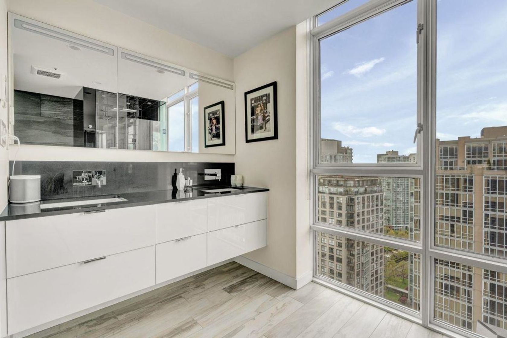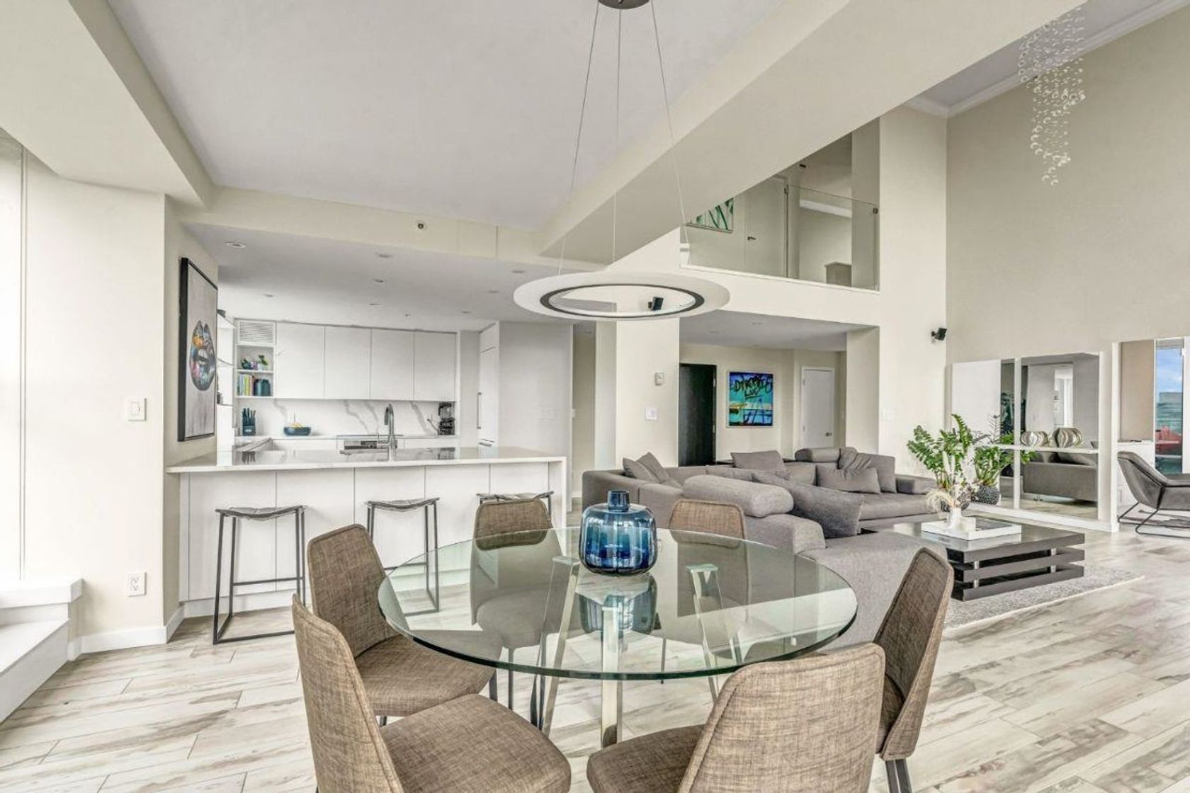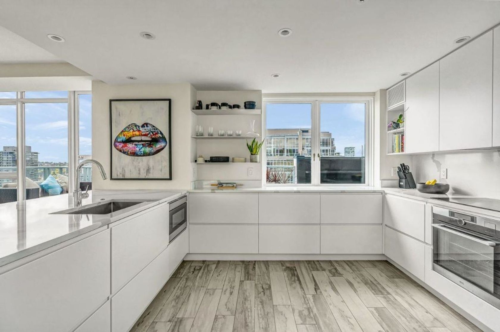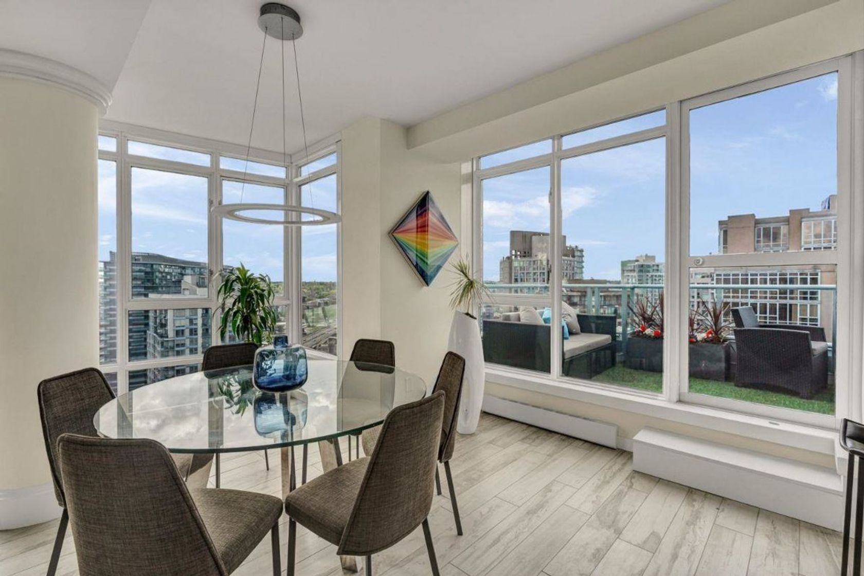 Rare find entertainers dream 2 level Penthouse, half of the entire 30t floor w/ 1000 sq of panoramic patio’s w/ ocean & city views. Bright open floor plan w/ over 2,000 sq.ft of interior living space. Completely renovated lux interior, sprawling entertainment sized rooms, 16 foot ceilings, floor to ceiling windows throughout, miles of wall space for art collectors. Custom kitchen w/ top appliances. Hot tub, & custom built indoor-outdoor serving bar. Large open concept living area w/ media centre. Master Bed w/ floor-ceiling windows, spa-like ensuite. In vibrant Yaletown District, steps to lively restaurants and lounges, sea wall access & walk to Yaletown & Granville Island. 2 secured parking stalls included.