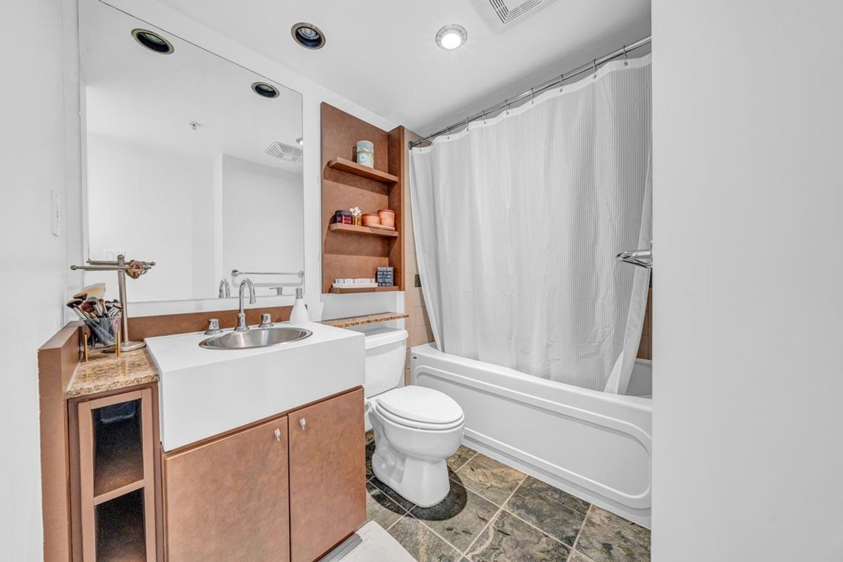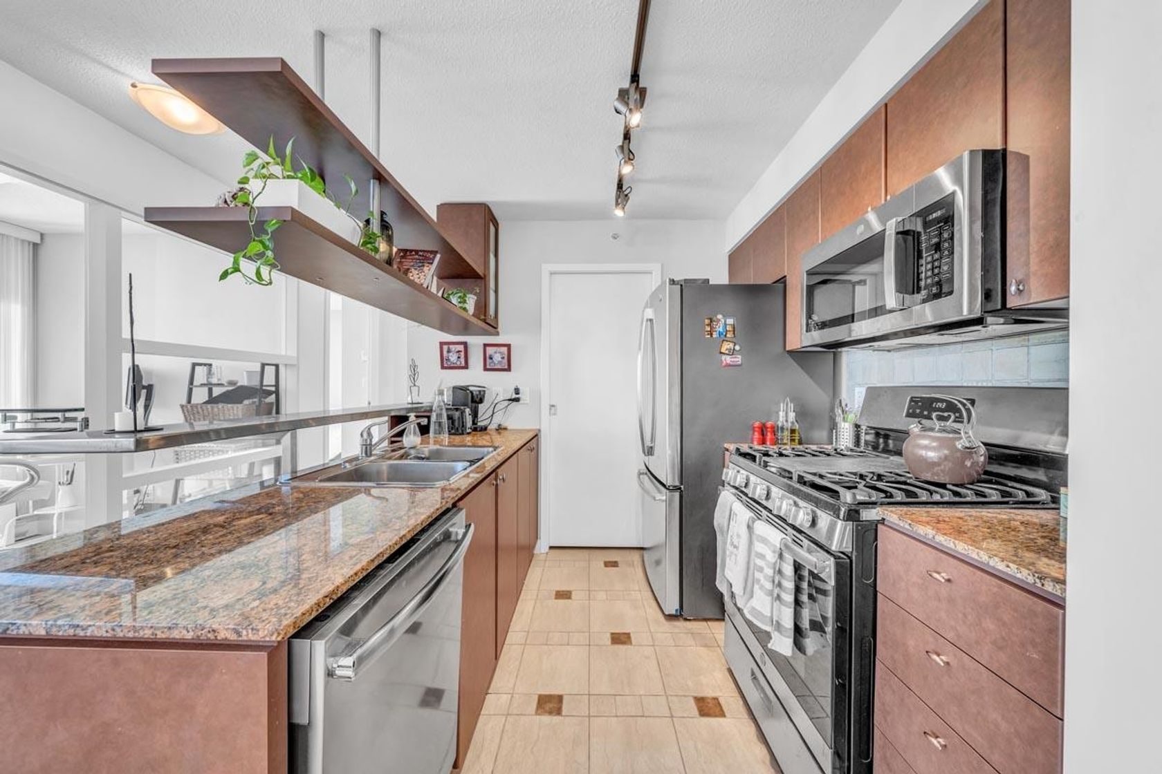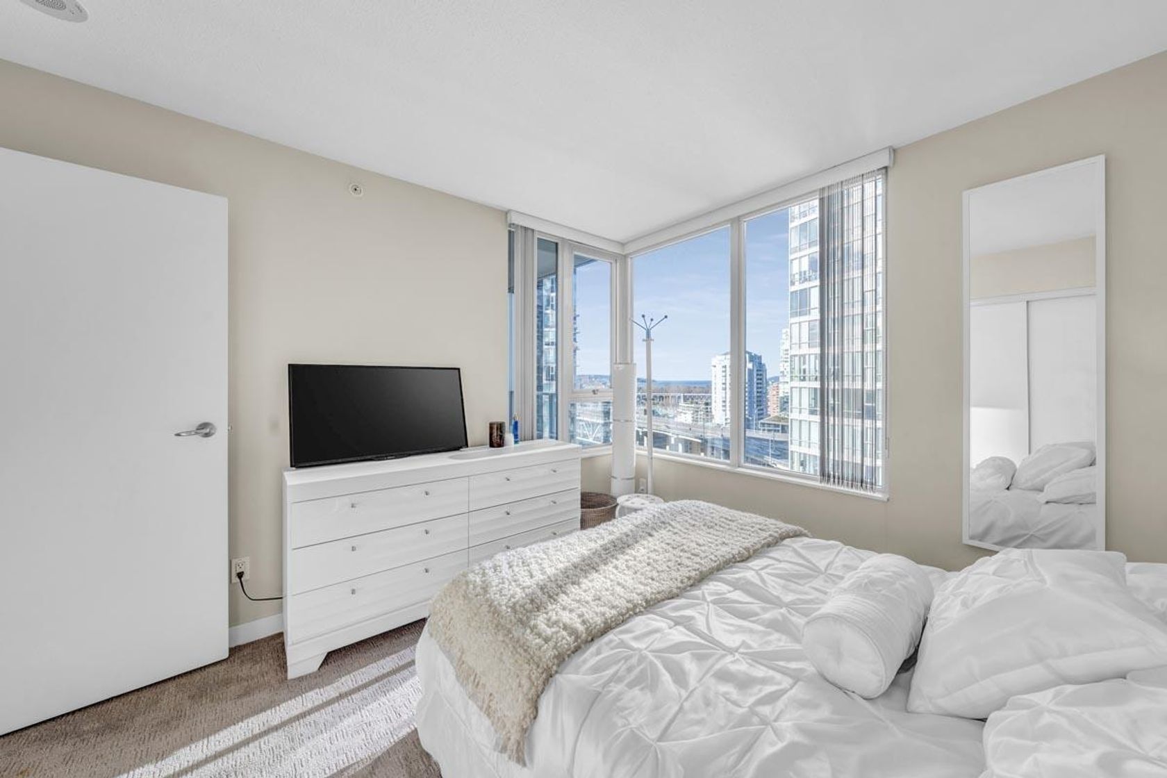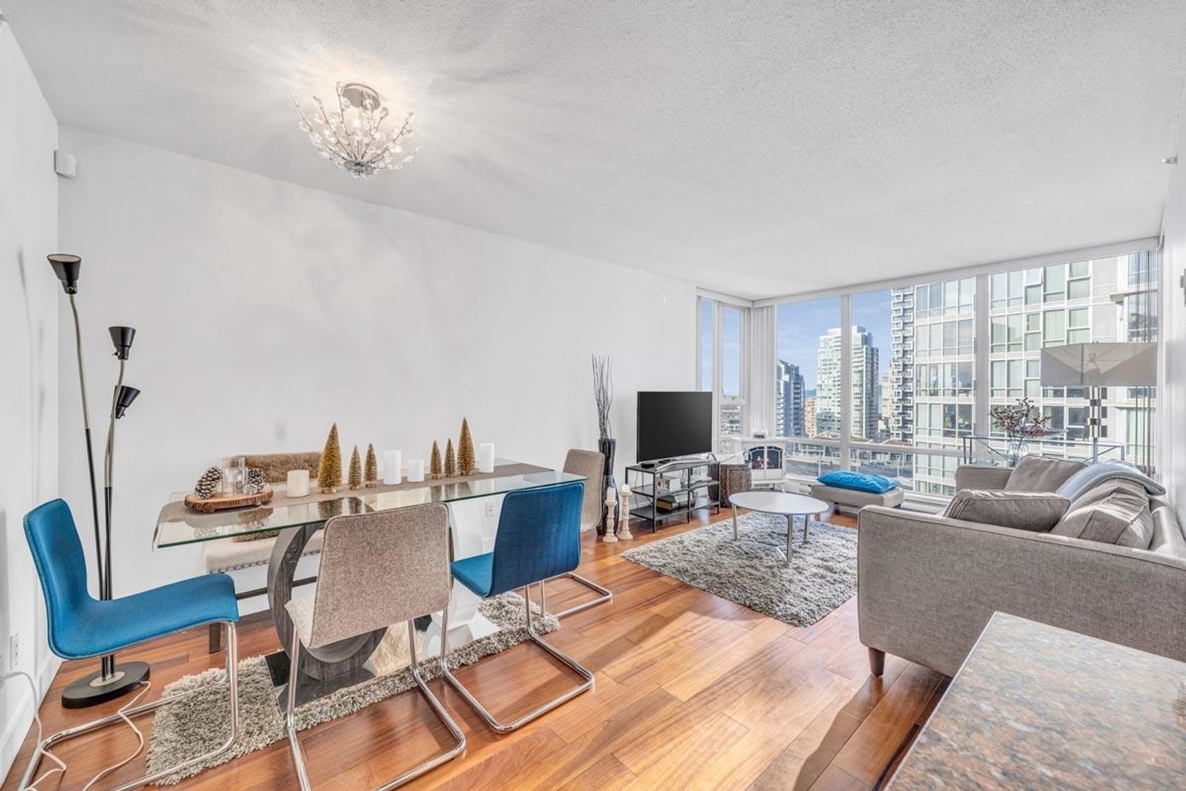 Your dream living at Azura II right at the Yaletown Waterfront Community. Built by Concord pacific this spacious 1 bed + Den 1 bath unit will not disappoint. Open Kitchen with SS appliances and eat in bar is great for entertaining and cooking, no wasted space living and dining with views of the city and water. Enjoy updated flooring in main living area and a good spacious Den. The building features the Super Club with a large gym, indoor swimming pool, sauna, hot tub, theatre rooms, squash courts and a guest suite. Just steps to George Wainborn Park, the seawall, urban Fair and all the shops and restaurants that Yaletown has to offer. 1 parking included First Open House Sat/Sun Feb 4&5 2-4pm