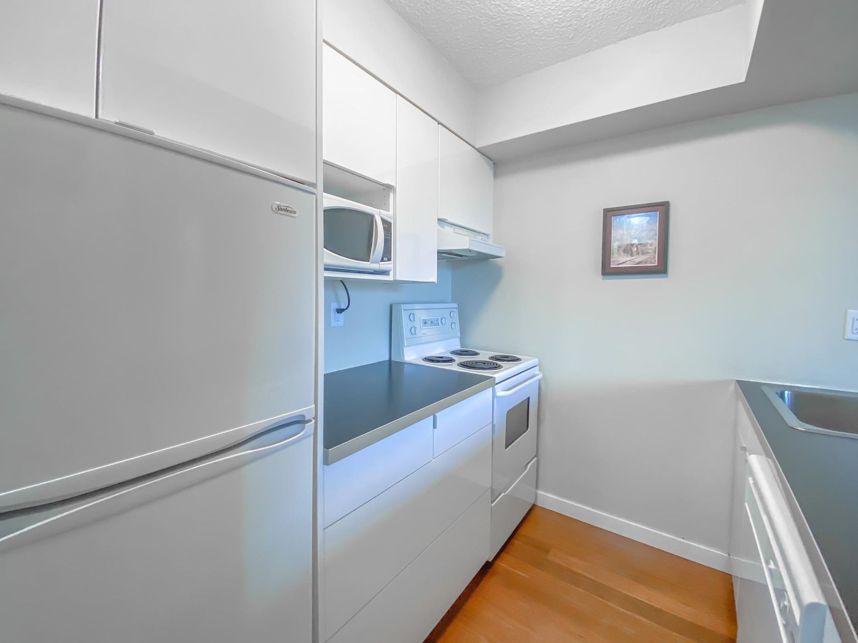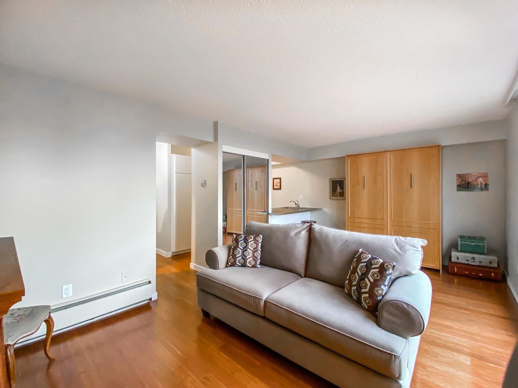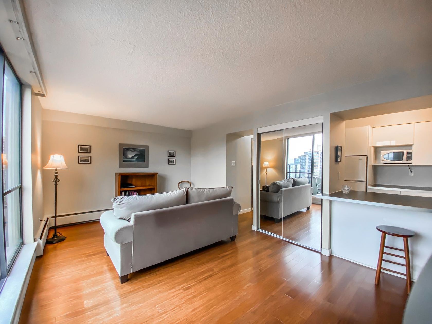 RARE OFFERING! Charming unit in 'The Chartwell' building, located in the heart of West End. Building is in great shape. Extremely quiet area, steps away from English Bay beach and the Seawall, Shops and Restaurants of Davie St., Denman St., and Robson St., as well as Stanley Park. The unit has a great floorplan and is in meticulous condition. Lots of closets and cabinets. Stunning open North Westerly views, overlooking the City, with a spacious balcony to enjoy them from. Comes with 1 parking stall. Pets and rentals allowed. A true bargain under $500k!! Don't miss this opportunity! Open Houses: Friday Dec. 22nd, 10am-12pm, Saturday December 23rd 12-2pm, Sunday December 24th 2-4pm.