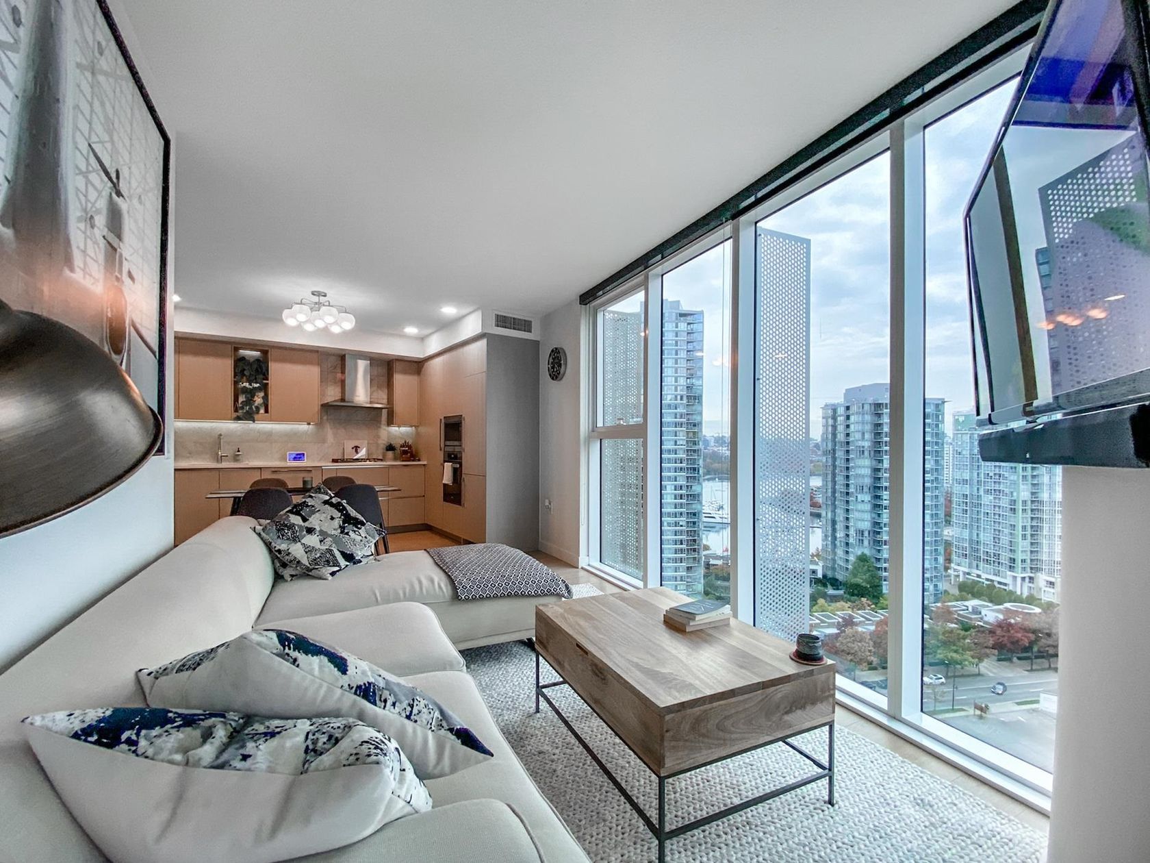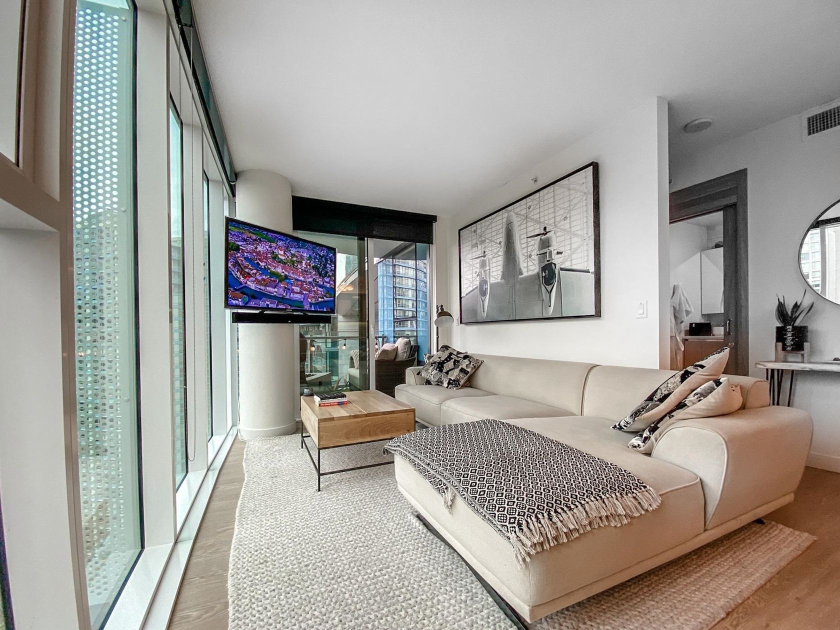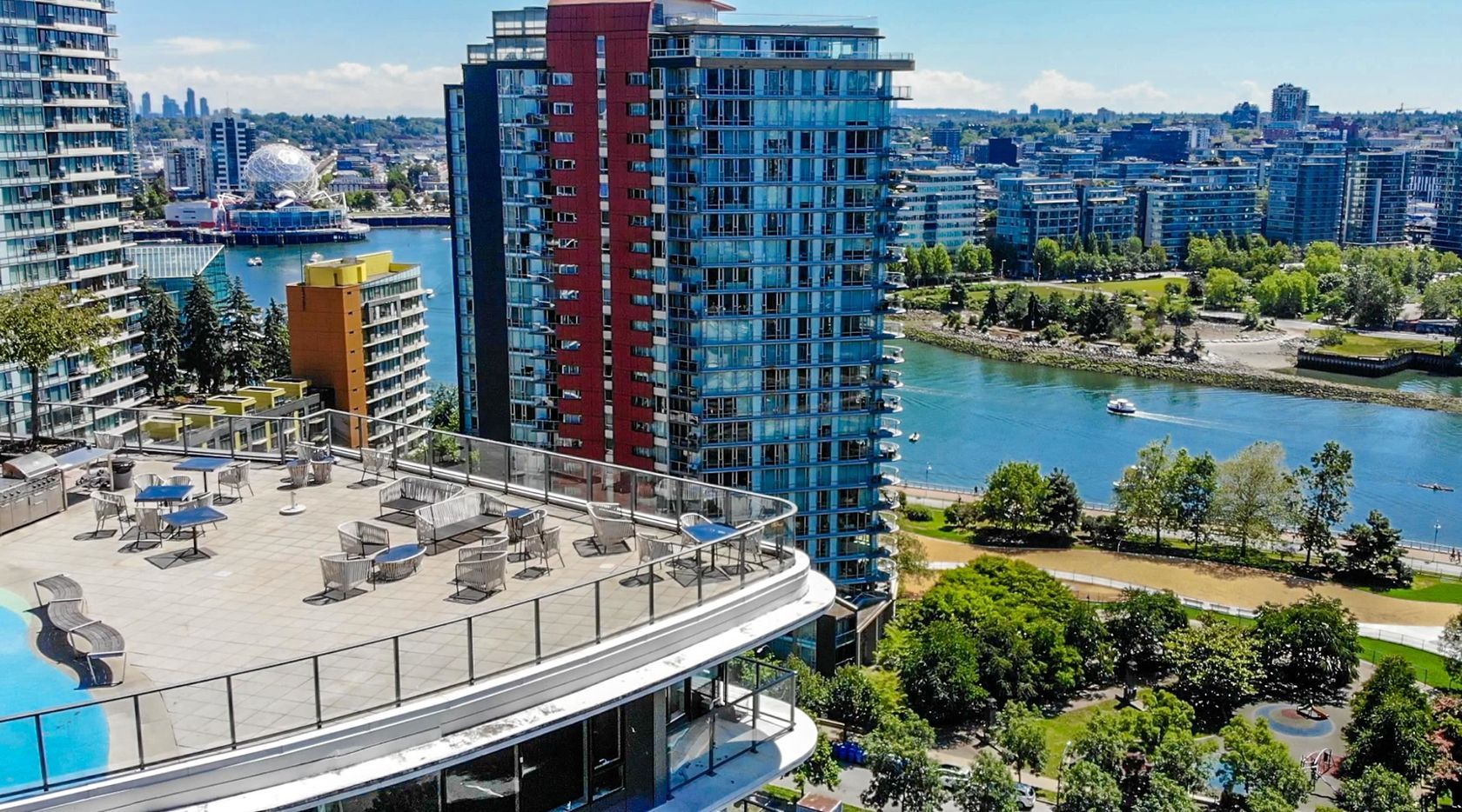 The Arc by Concord Pacific! The best 1 bedroom floorplan in the building. Corner unit, w/ Water & Open City Views, as well as a large covered balcony. 8'8" Ceilings, fantastic floorplan, no wasted space, generous sized bedroom, flex room, gourmet kitchen w/ top of the line Miele appliances. Fully Air Conditioned. The highest floor for this floorplan. The Sky Club is an Exquisite Resort style amenities w/ glass bottom pool, sauna, steam room, coffee lounge, fitness center, touchless car wash station & 24hrs concierge service. Part of the vibrant Yaletown & Best Master-planned community w/ just steps to the seawall at Coopers' Park, Marina, restaurants, groceries & transit. Come & Experience the Luxurious Living at The Arc and enjoy beautiful water views of False Creek!