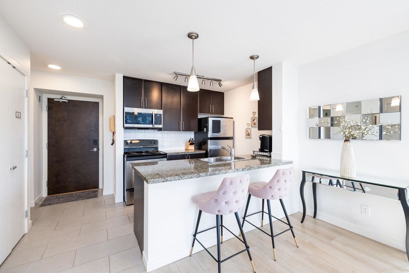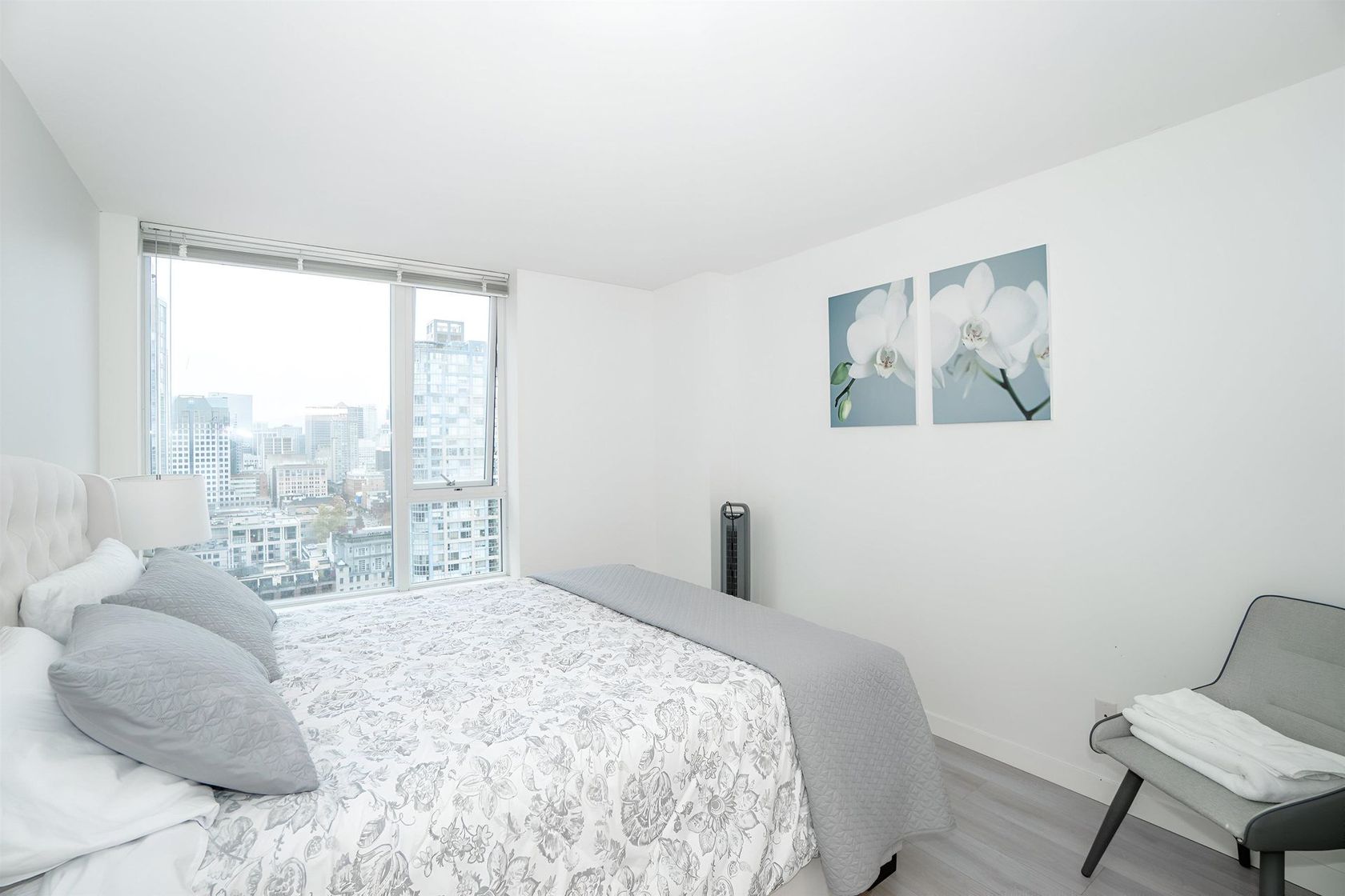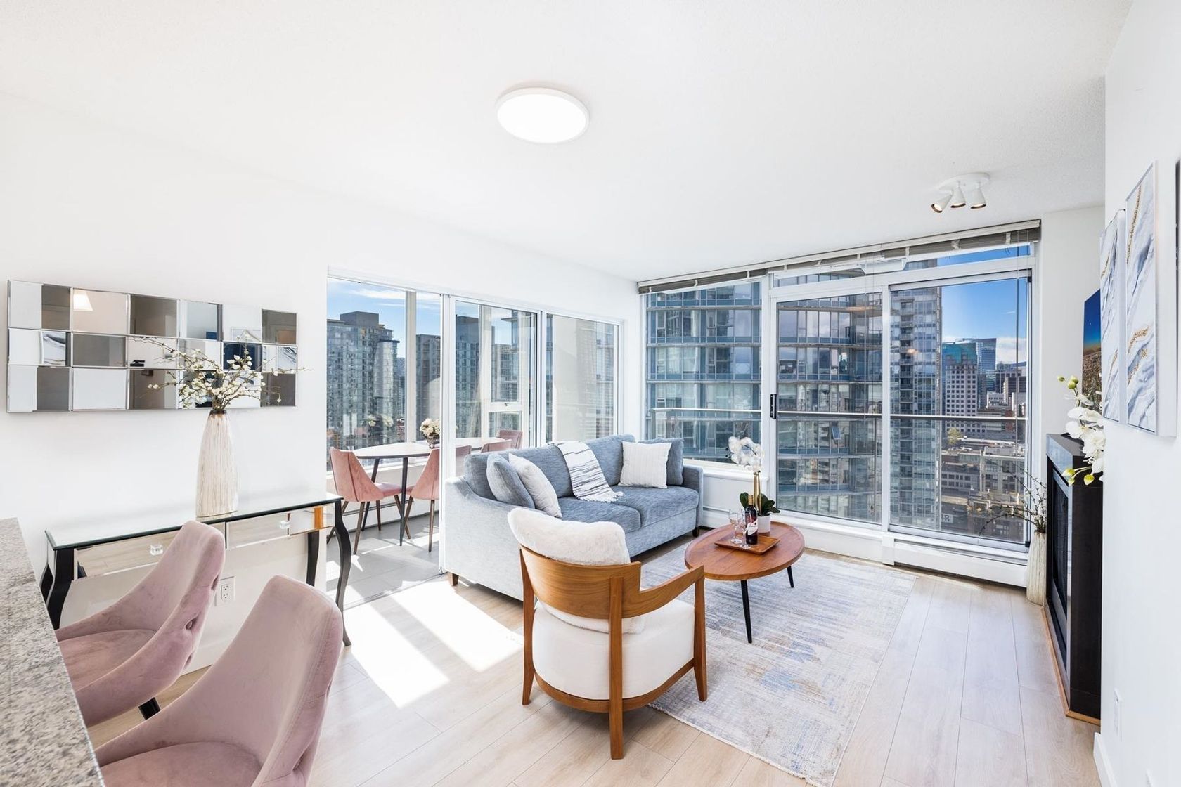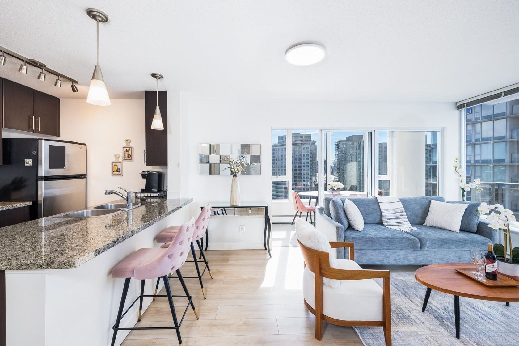 A spectacularly renovated two-bedroom, two-bathroom condo in the heart of downtown Vancouver, that really has it all, especially the stunning water views towards Burrard Inlet, and the snow-capped North Shore Mountain views. This suite is beautifully finished inside, and also benefits from great city views! You are on the 29th floor, above it all, in a fantastic newer concrete building, with a great floor-plan and lots of light. The location could not be any better, with easy access to the SkyTrain, Seawall, Gastown, Chinatown, Yaletown and the stadiums. The building also allows short-term rentals generating eye-popping monthly revenues. The amenities are amazing and include an indoor pool, gym, sauna, jacuzzi, games room, caretaker and bike locker.