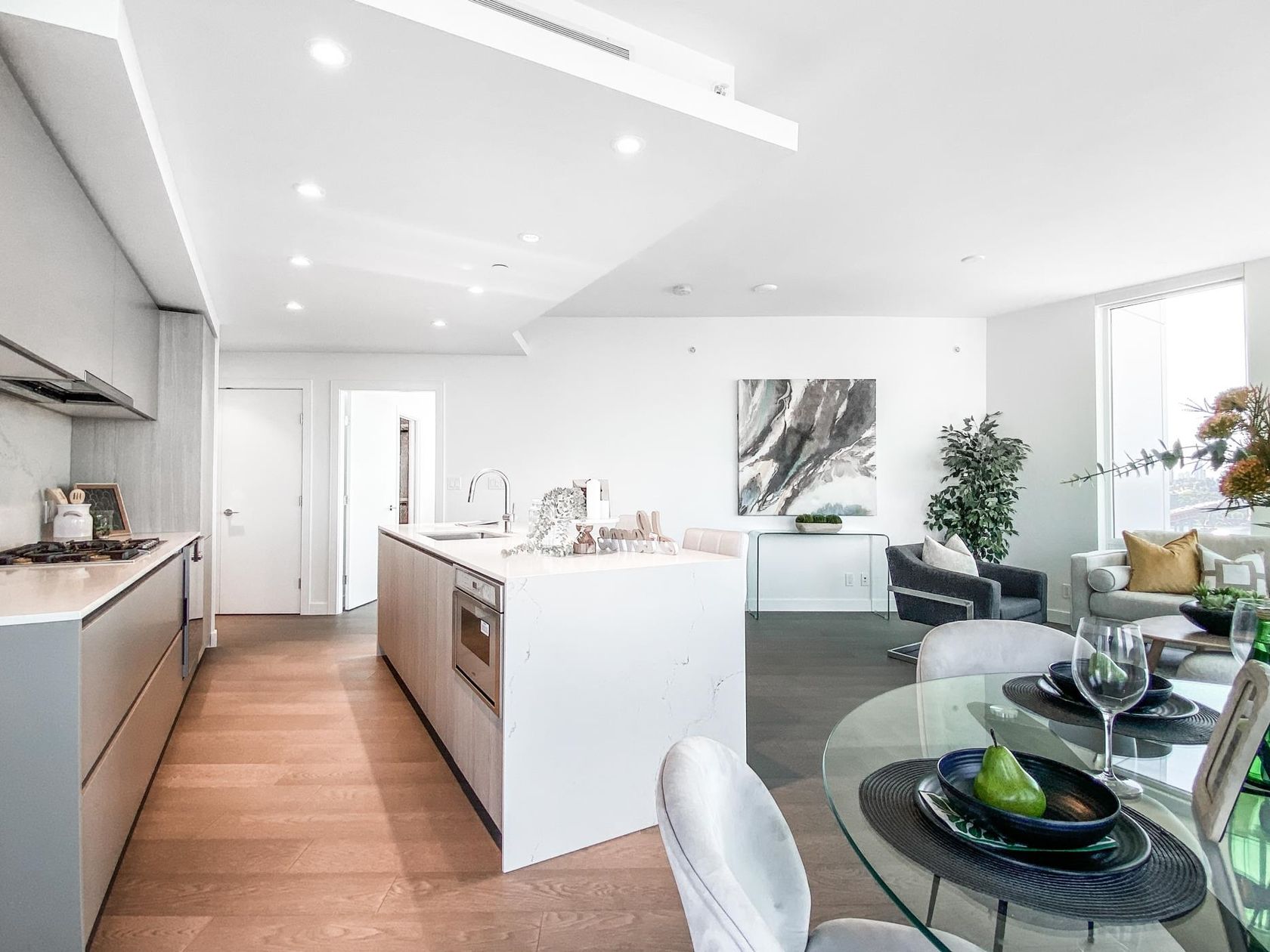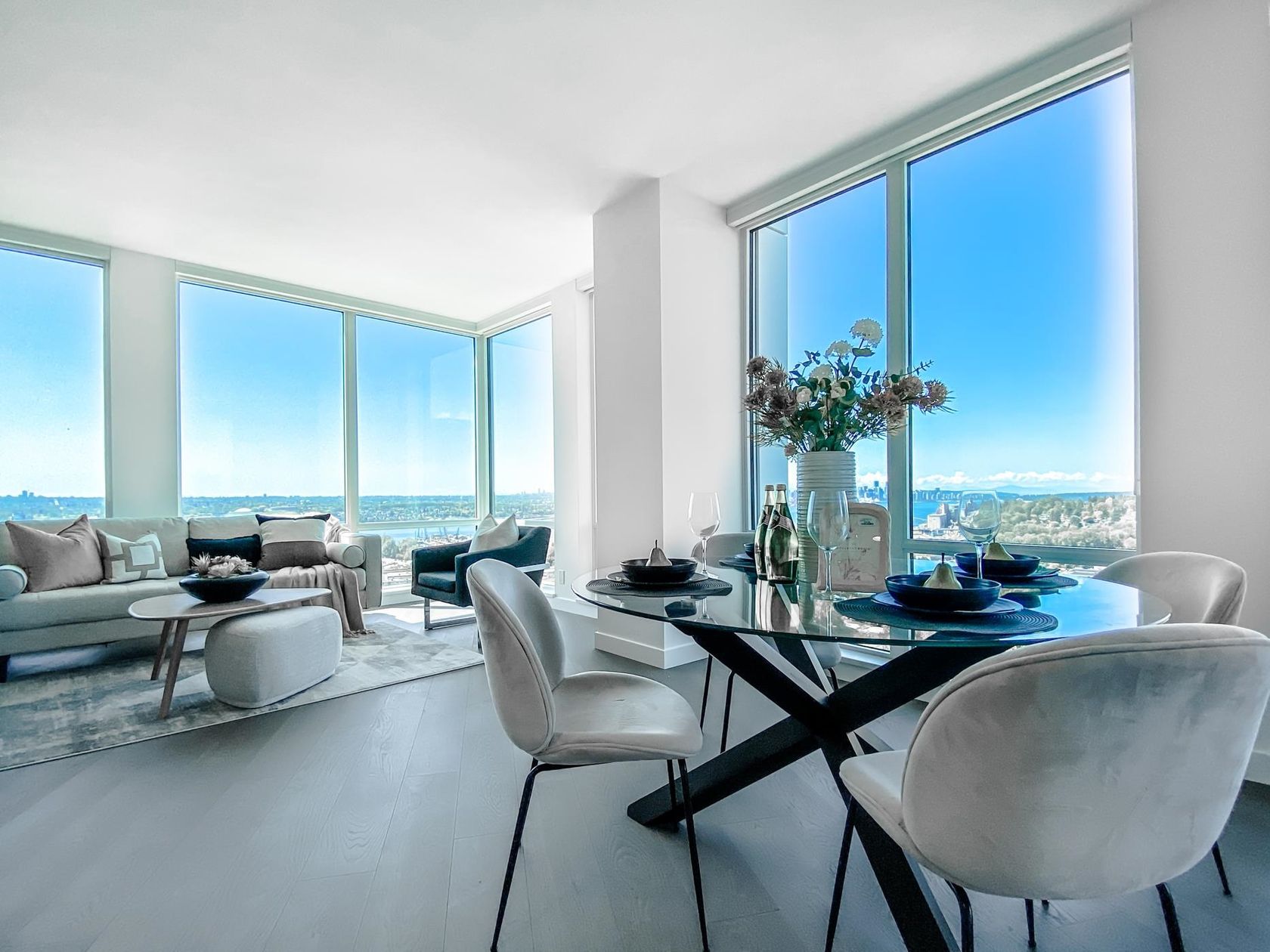 Welcome to Newest Addition to the NV Skyline; ‘Apex’ by Denna Homes! This S/W facing 3bed 2.5 bath, Air Conditioned Corner unit is on the 3rd highest floor, and part of the ‘Denna Collection’ Executive Residenses. These homes are the pinnacle of luxury, including: high ceilings, Gaggenau appliances, stone countertops, waterfall-edge island, imported Italian cabinets, and heated tile bathroom floors. Loads of natural light with floor-to-ceiling (triple glaze) windows, wood flooring, oversized wrap around balcony, gas bib for BBQing, & surrounded by views of the ocean inlet & bridge! Over 14000sf of luxurious amenities at the Denna Club- 25-meter infinity edge pool, hot tub, steam room, sauna, gym & party room. 2 Parking Stalls and 1 Locker. GST Paid. OH: April 26 & 27, Sat 2-4PM /Sun 1-3pm