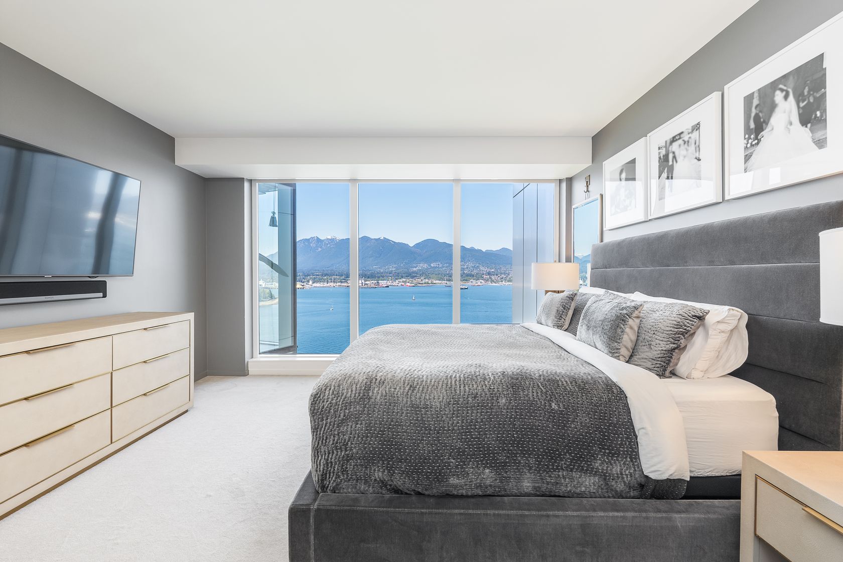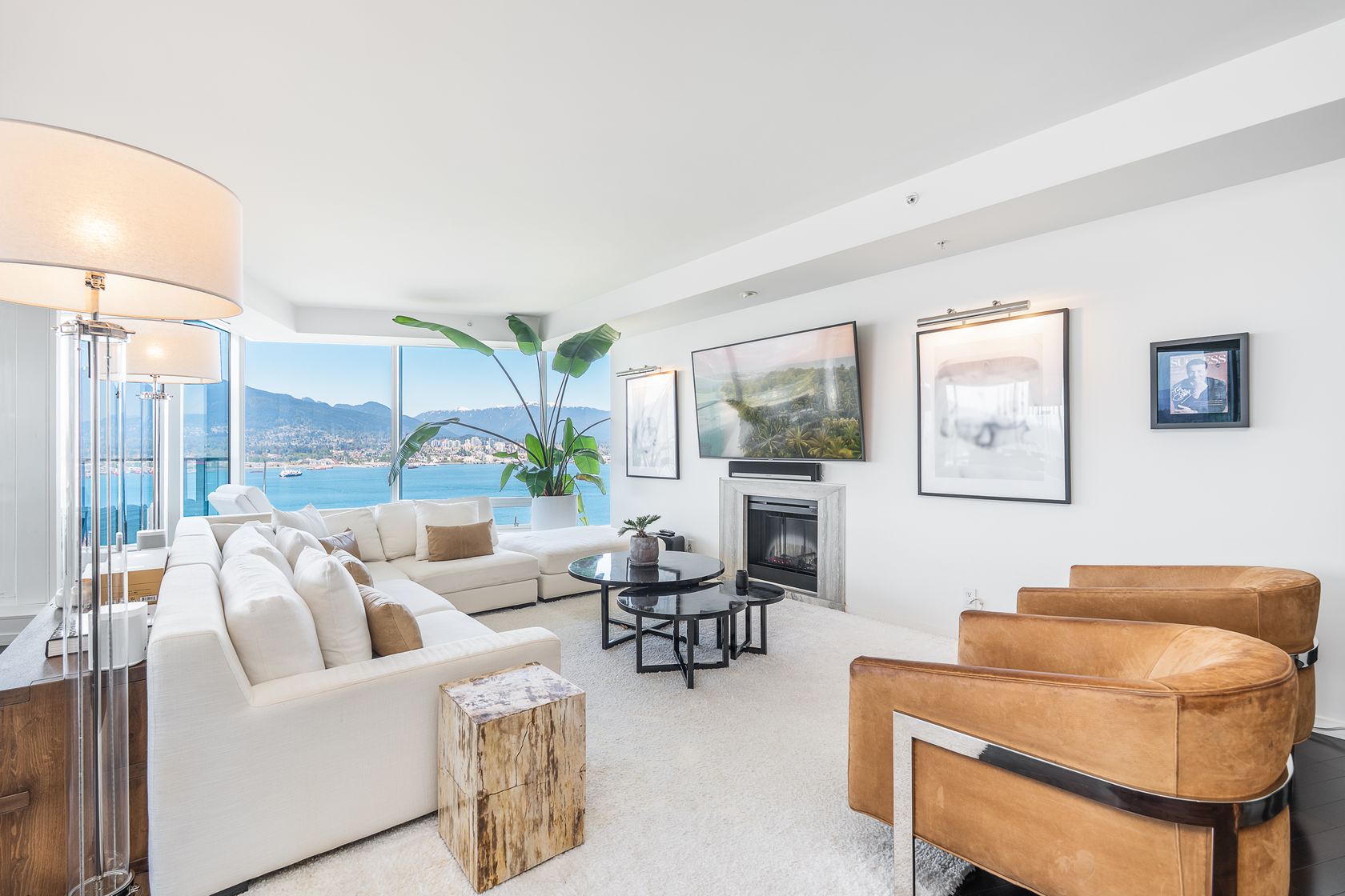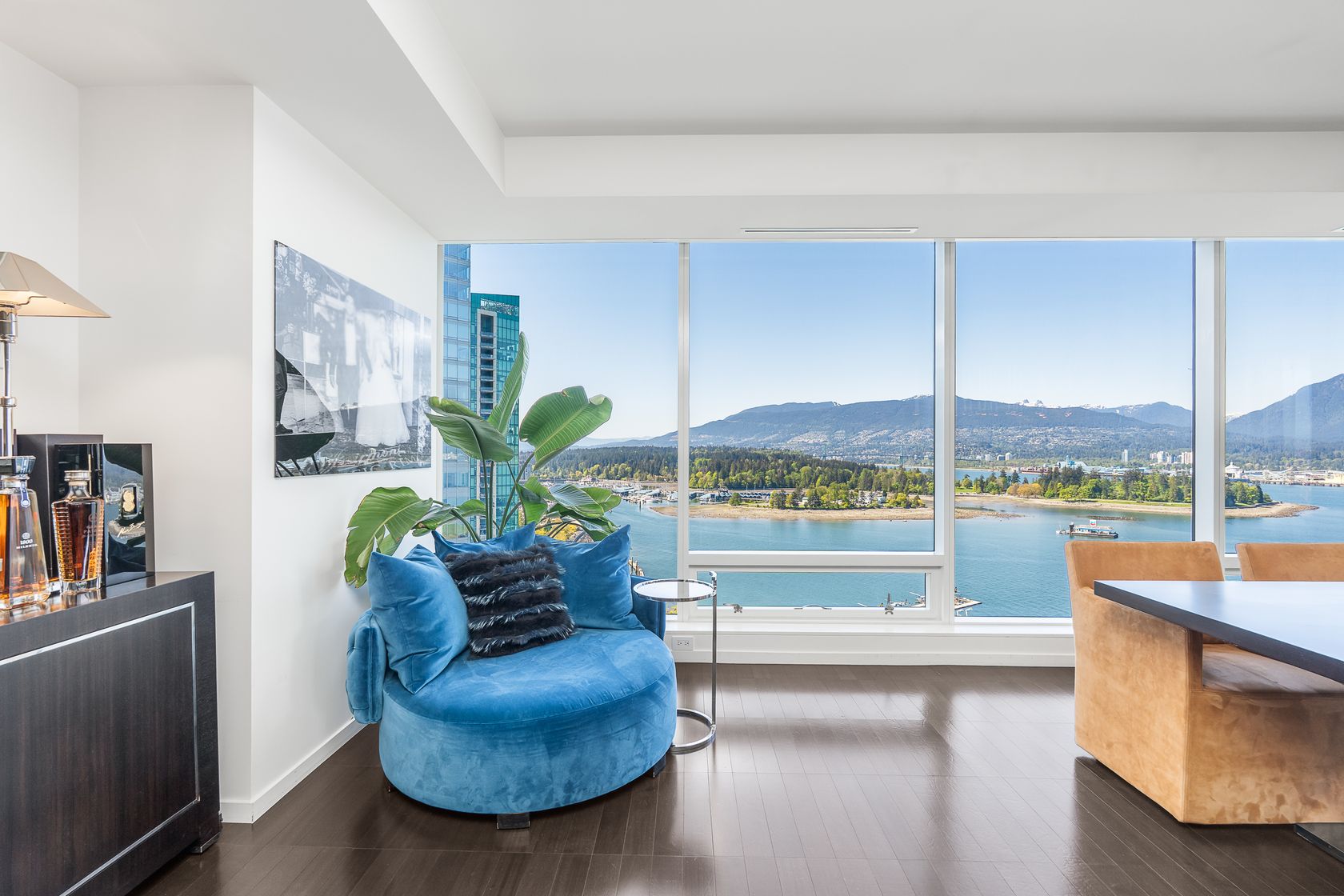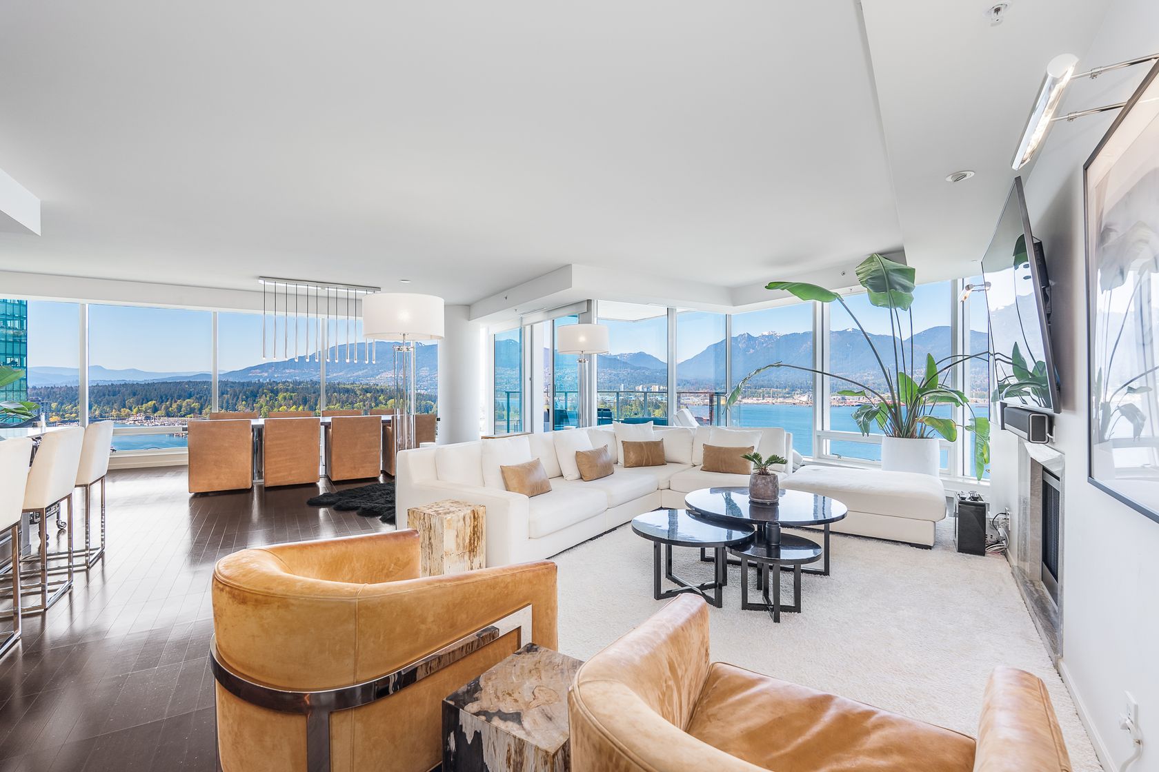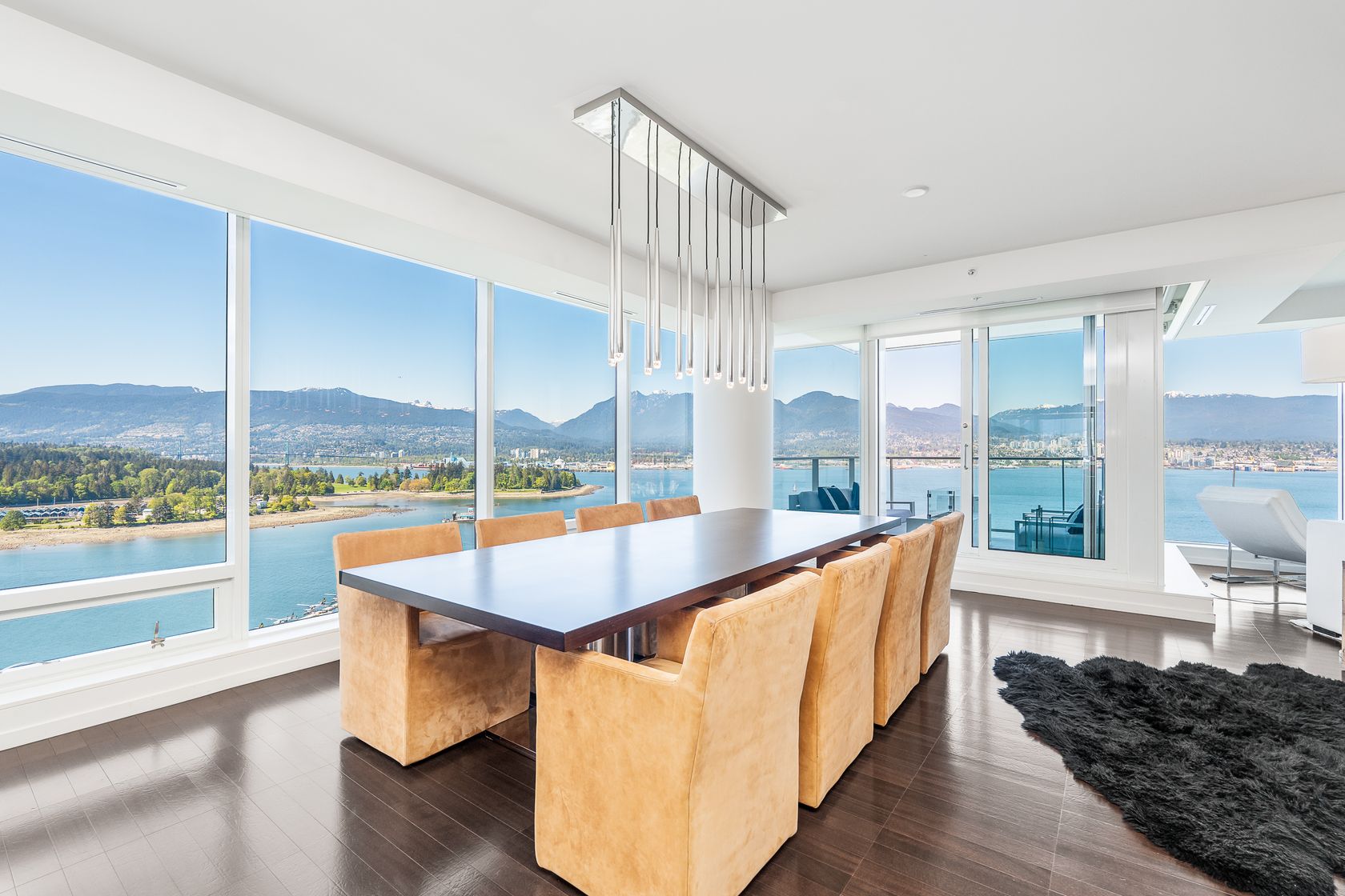 Live above it all in this fully furnished corner residence at Fairmont Pacific Residences. With 270° views of the ocean, mountains & Coal Harbour, this 2,669 SF home features floor-to-ceiling windows, RH furnishings, Hermès wallpaper & a custom 12-ft dining table. Gourmet kitchen with Miele/Sub-Zero appliances, wine fridge, cappuccino machine & 5-burner gas cooktop. Two bedrooms with spa-like marble ensuites, walk-in closets & blackout blinds. Smart home tech includes motorized shades, climate & lighting control. Enjoy 5-star hotel amenities: concierge, spa, pool, gym, room service. Steps to the Seawall & fine dining. 1 private parking included. This is not just a home—it’s an elevated lifestyle in Vancouver’s most prestigious address.