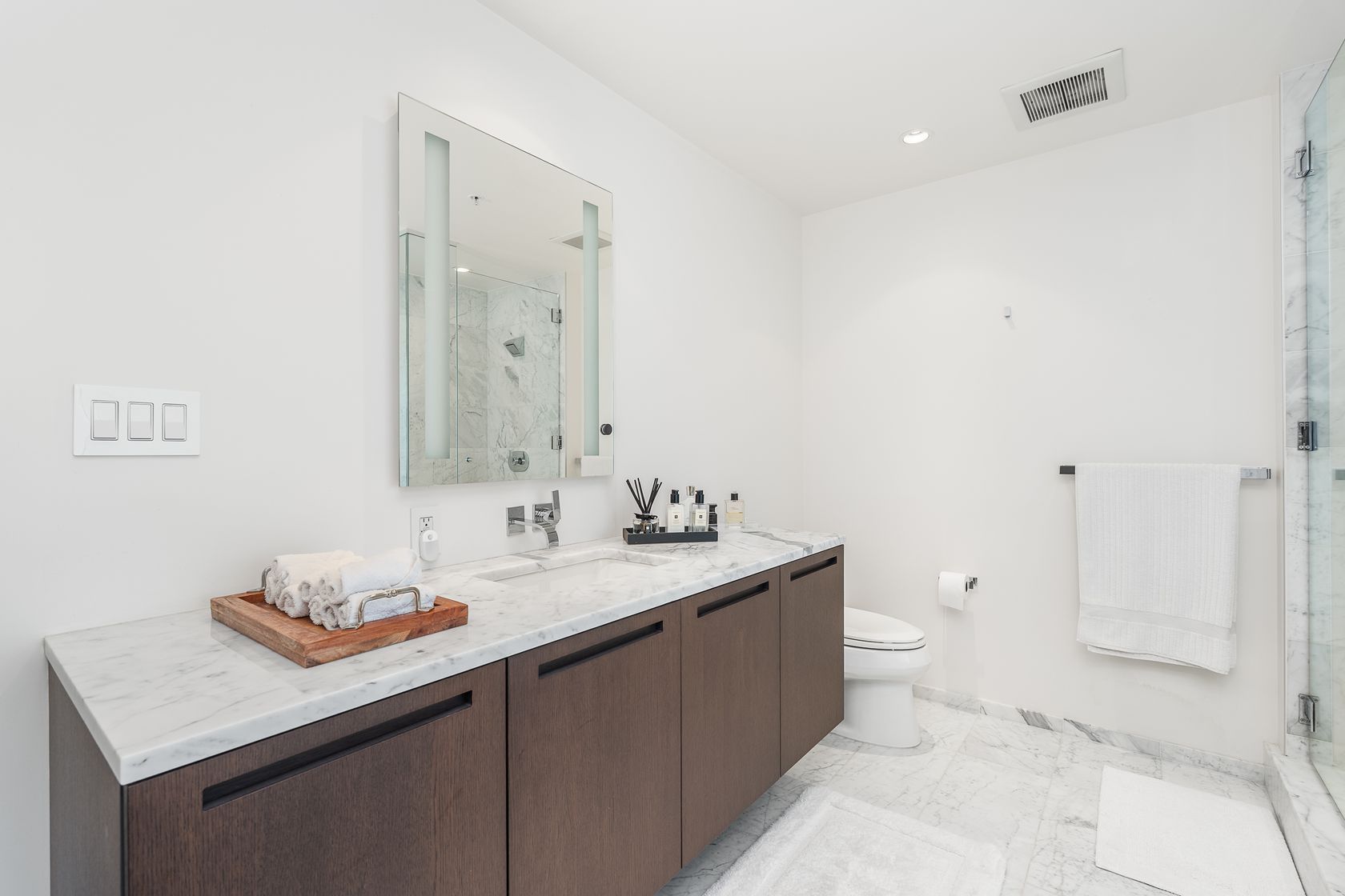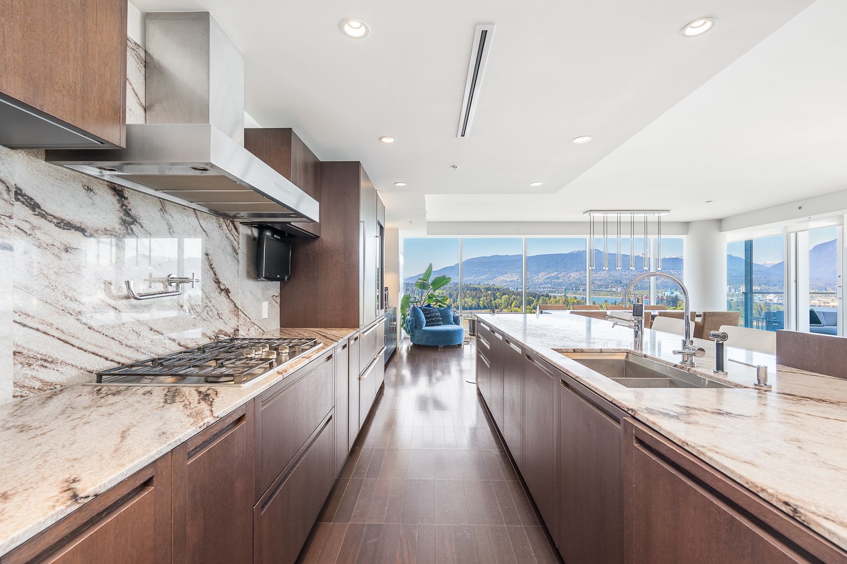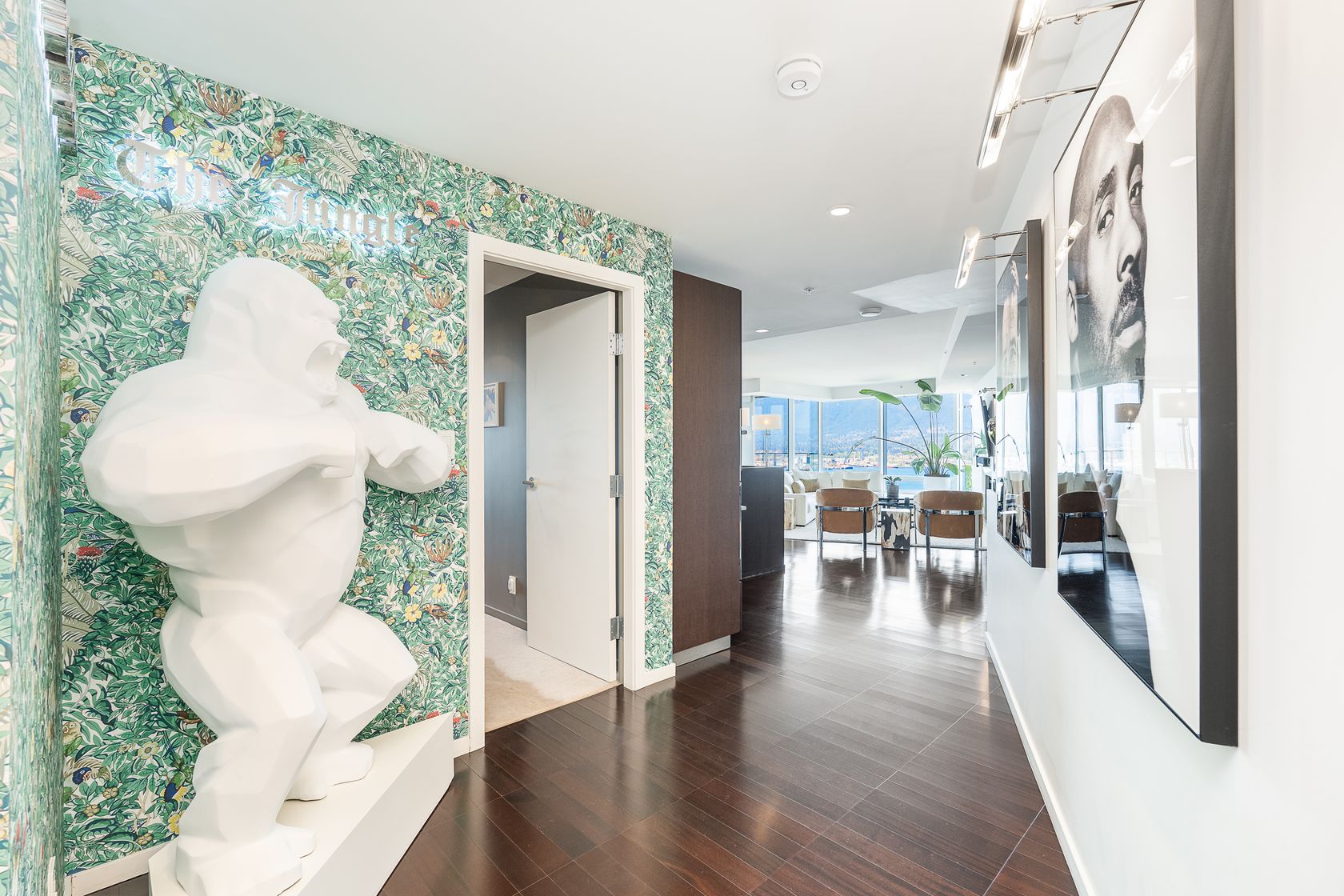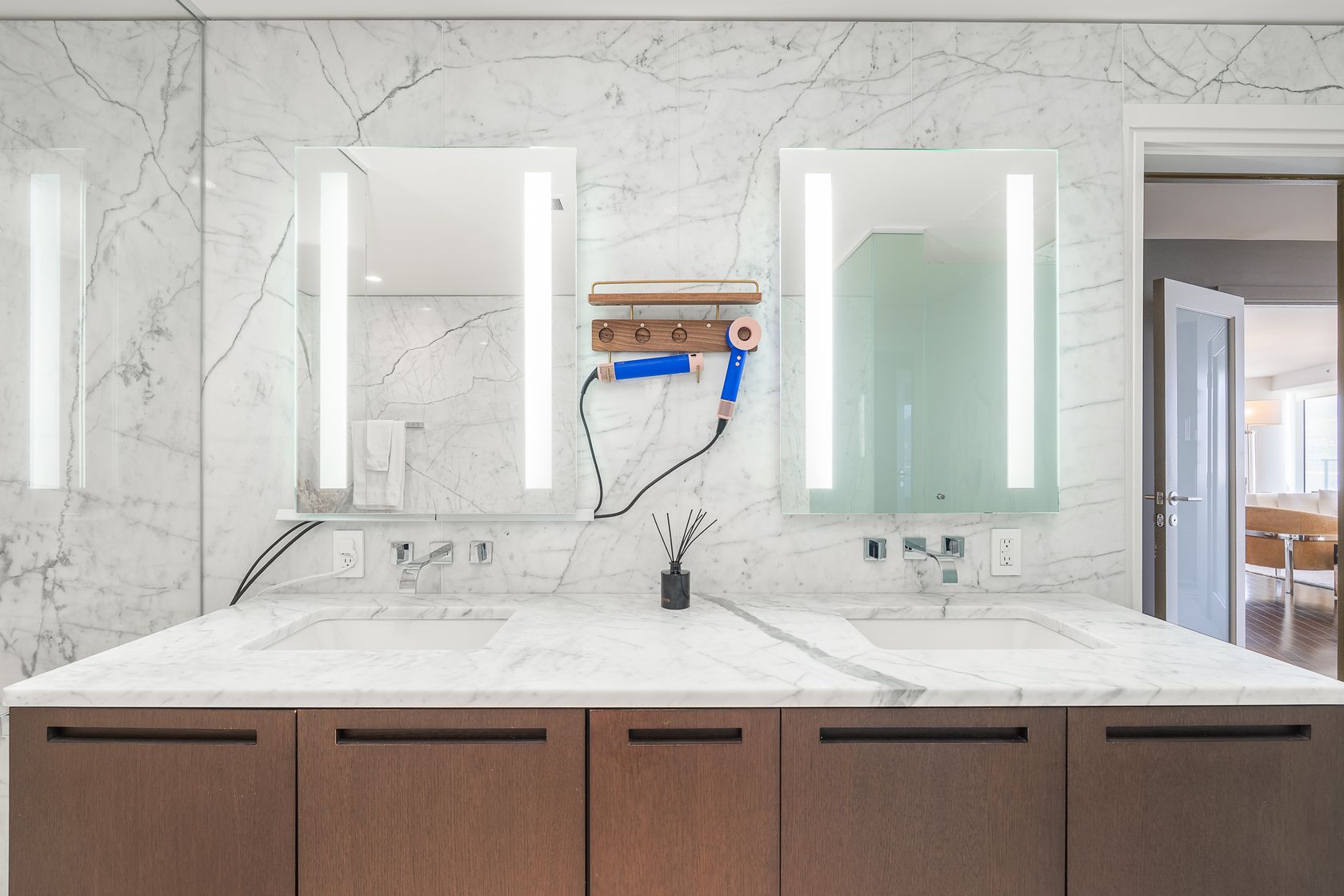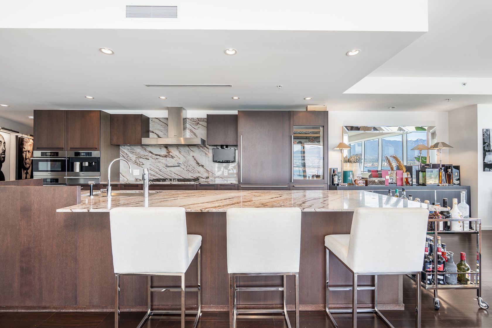 Live above it all in this fully furnished corner residence at Fairmont Pacific Residences. With 270° views of the ocean, mountains & Coal Harbour, this 2,669 SF home features floor-to-ceiling windows, RH furnishings, Hermès wallpaper & a custom 12-ft dining table. Gourmet kitchen with Miele/Sub-Zero appliances, wine fridge, cappuccino machine & 5-burner gas cooktop. Two bedrooms with spa-like marble ensuites, walk-in closets & blackout blinds. Smart home tech includes motorized shades, climate & lighting control. Enjoy 5-star hotel amenities: concierge, spa, pool, gym, room service. Steps to the Seawall & fine dining. 1 private parking included. This is not just a home—it’s an elevated lifestyle in Vancouver’s most prestigious address.