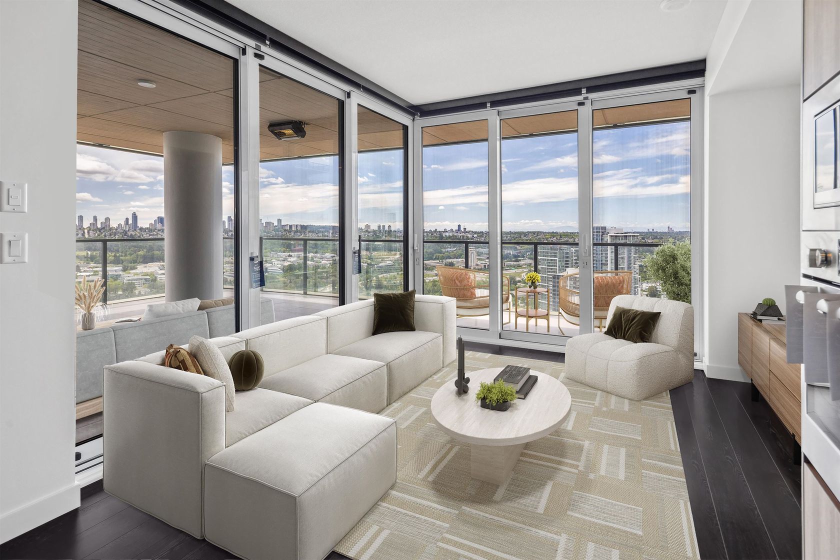 Welcome to Concord’s latest masterpiece in Brentwood: Hillside East! Set atop a 13-acre urban park with green pathways, a school, and daycare, this iconic building offers 24/7 concierge, a state-of-the-art fitness centre, lounges, party room, theatre/karaoke, study/library, co-working space, pet/car wash stations, lap pool, hot tub, and basketball court. This is the most coveted floorplan: a bright and efficient 750sf 2 bed, 2 bath southerly corner unit with sweeping views and a spectacular 1235sf heated patio for year-round enjoyment! Inside: A/C, automated roller blinds, Bosch appliances w/ gas cooktop, quartz counters, laminate flooring, and 8'8" ceilings. Comes with 1 EV parking and 1 storage locker. Prime location—steps to SkyTrain, shopping, and dining. OH: Sunday, May 18, 2–4PM