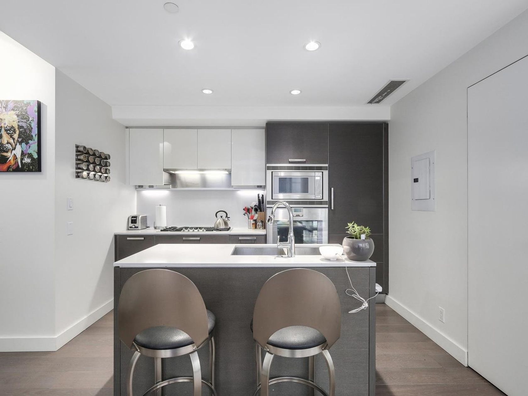 Welcome to Coal Harbour’s ‘West Pender Place’ and this very rare offering of a large 1 bed / 1.5 bath, well appointed, Airconditioned unit, with high-end modern finishes and an oversized private patio! 'Dada' of Italy' gourmet kitchen with top of line Gaggenau/Sub-Zero appliances, Quartz counter-tops, Engineered Wood Flooring, Roller Blinds, Rain Shower, and the very rare 2nd Bath! Amenities at WPP include gym, pool, sauna/steam room, party/meeting room, roof garden with BBQ and 24 hours concierge. Full size parking and a storage locker on P2. Phenomenal location. Priced sharp, don’t miss this opportunity! OH: May 24, Sat 2:00-4:00pm