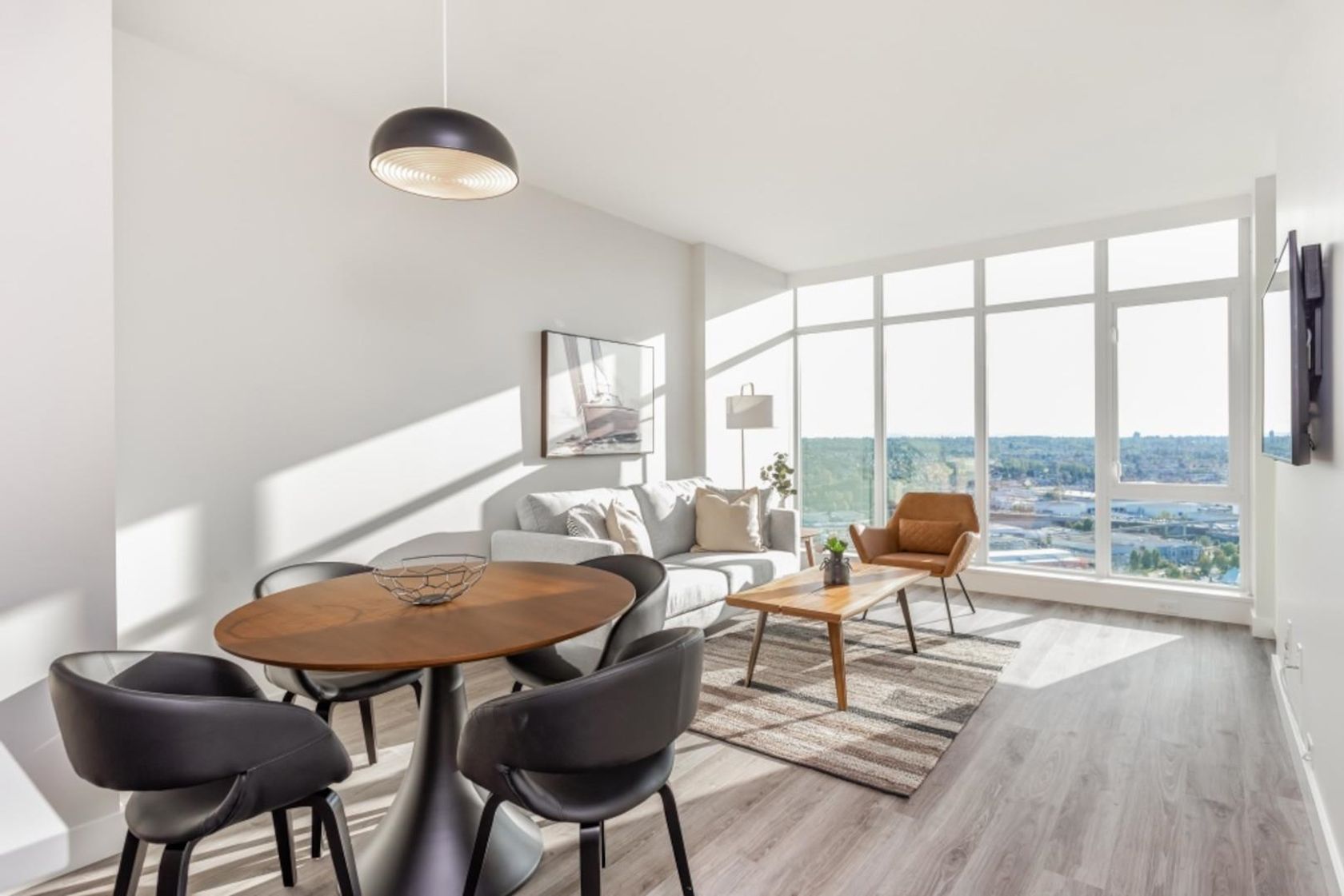 Welcome to the SUB-PENTHOUSE level of The 'Escala' Built by Renowned Ledingham McAllister in the heart of Brentwood. This 1 bed + Den offers a spacious 660sqft of living space with SW facing windows for city exposure. Open concept Kitchen, with top of the line appliances. Fully Air conditioned, roller blinds,and a spacious balcony. Beautiful SW Unobstructed Views, looking towards the Downtown Skyline. Escala has over 15,000sqft of amenity space including concierge, fitness center, lounge, billiards table, indoor pool, sauna/steam room, hot tub, theatre room, eve a hotel style guest suite. Just 2 blocks to the Gilmore sky train station and a short walk to all of Brentwood mall's restaurants and shops. Furniture Negotiable.
