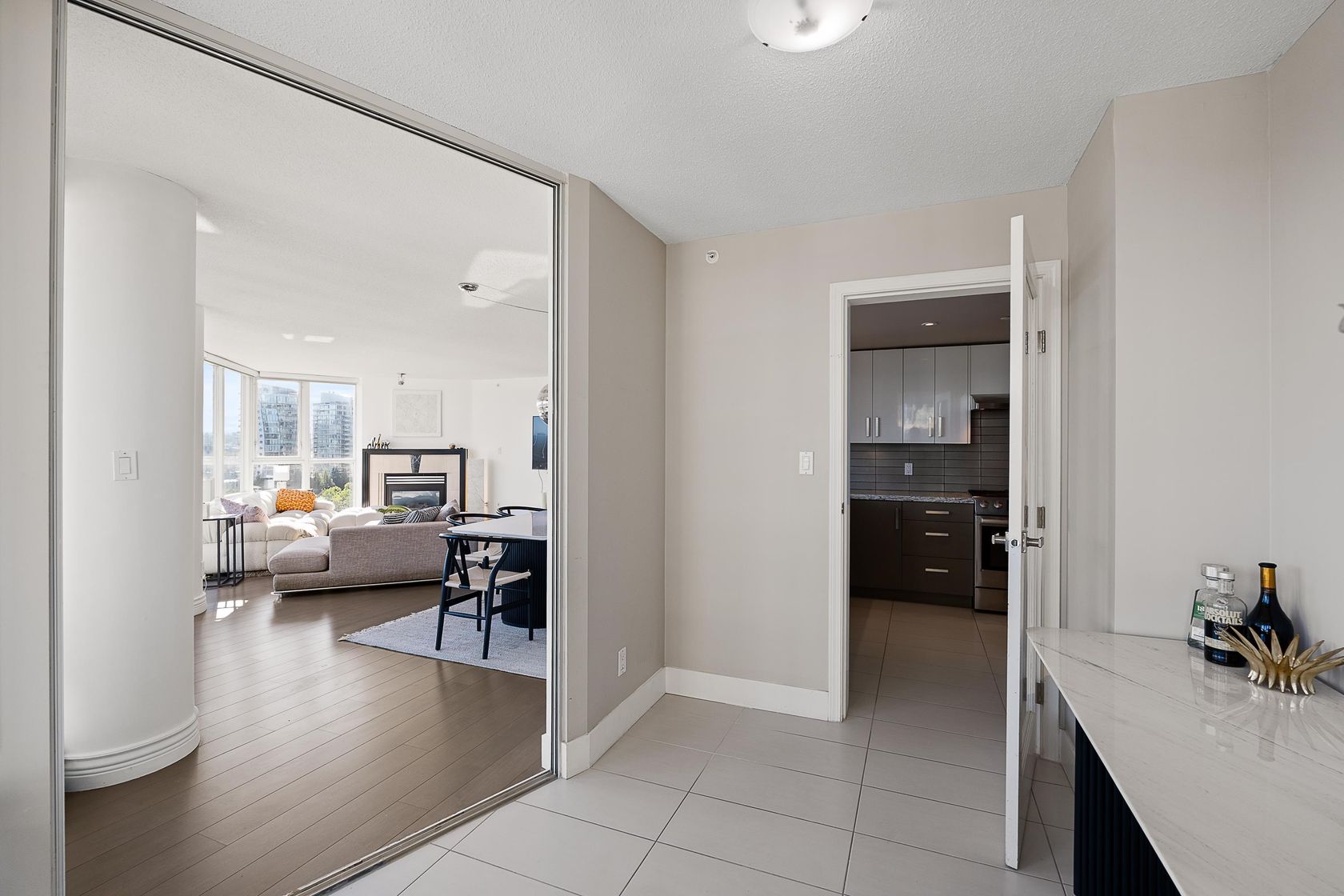 Welcome to the Columbus and this very rare 1650sf 'true waterfront' sunny corner unit! Enjoy incredible views from every room of this Fully Renovated, Air Conditioned unit. Amazing flroorplan with 3 bedrooms, 3 bathrooms, and a den. Generous living and dining area, perfect for entertaining. Gourmet Kitchen with gas cooktop, S/S Appliances, and ample cabinetry. Motorized blinds, wide plank Engineered Wood flooring, Full Size W/D, large balcony overlooking False Creek, and 2 parking stalls! The Columbus offers 24 hour Concierge Service, an indoor pool, a fitness center, hot tub, steam room, and a business center / meeting room. Perched on top of the seawall, on the quietest part of Marinaside Cres. you are close to everything! Experience Yaletown Living at it's best. Call for a tour.