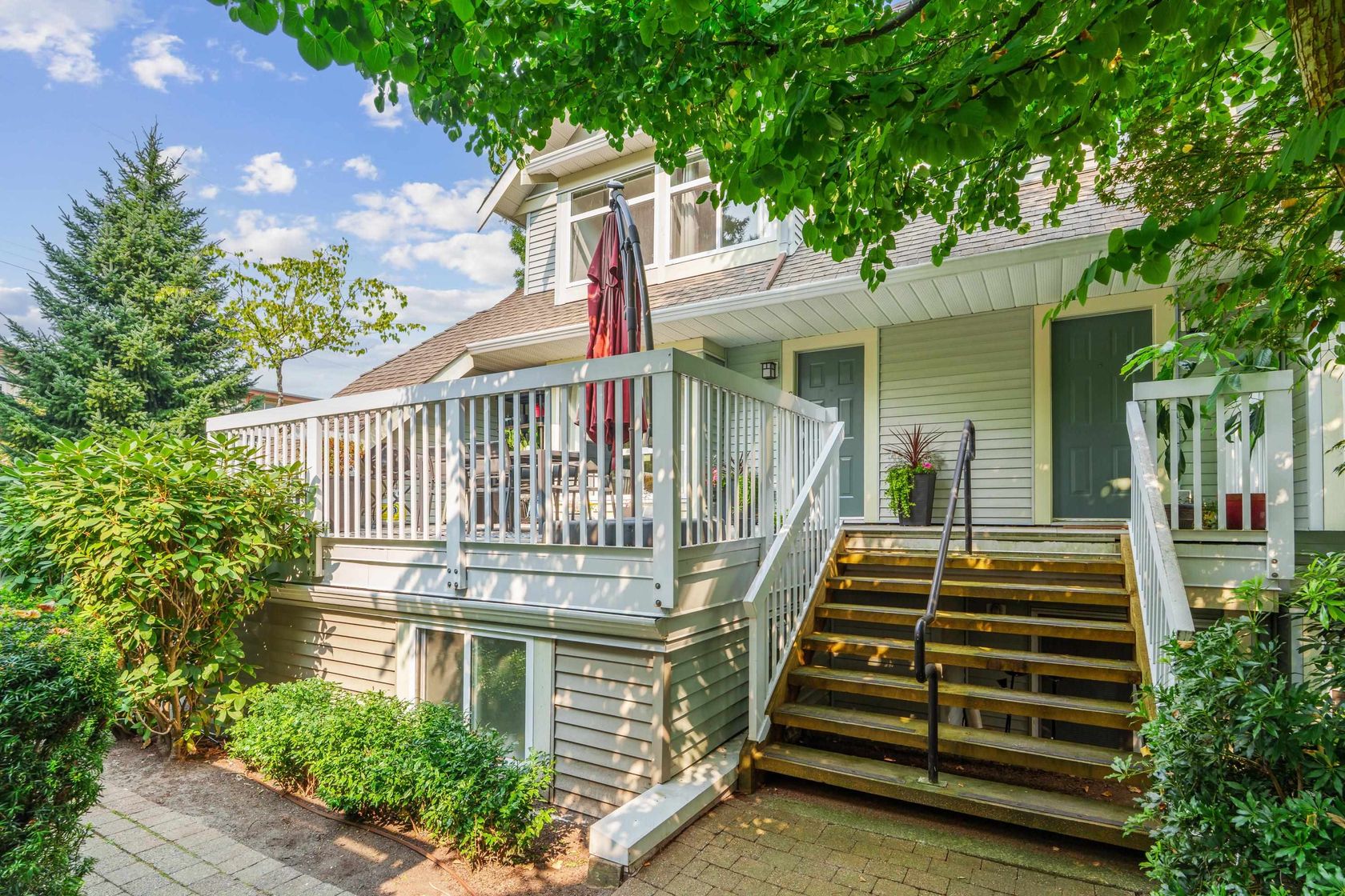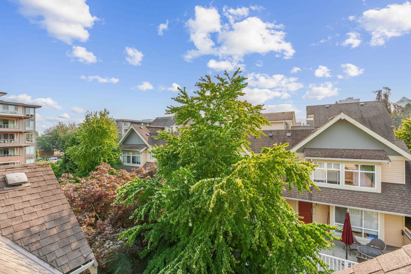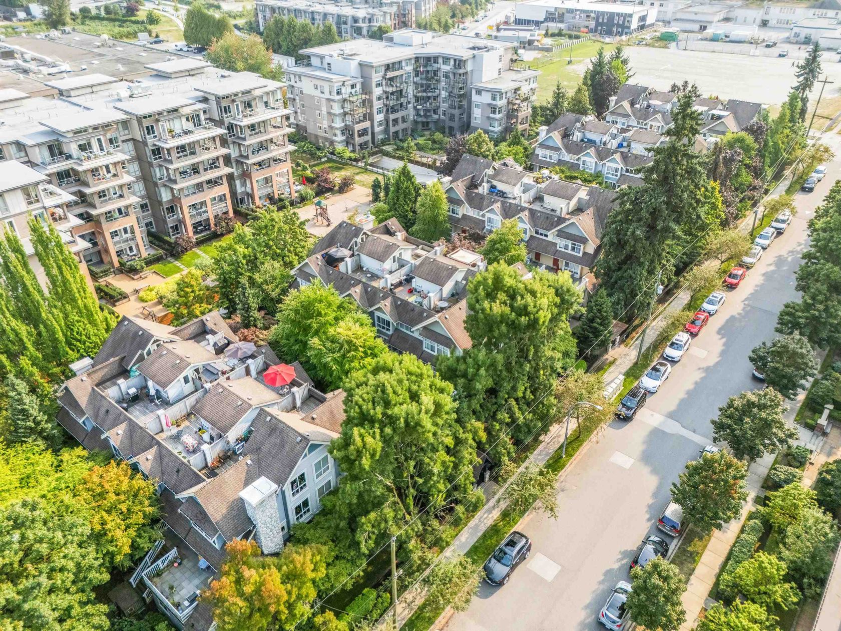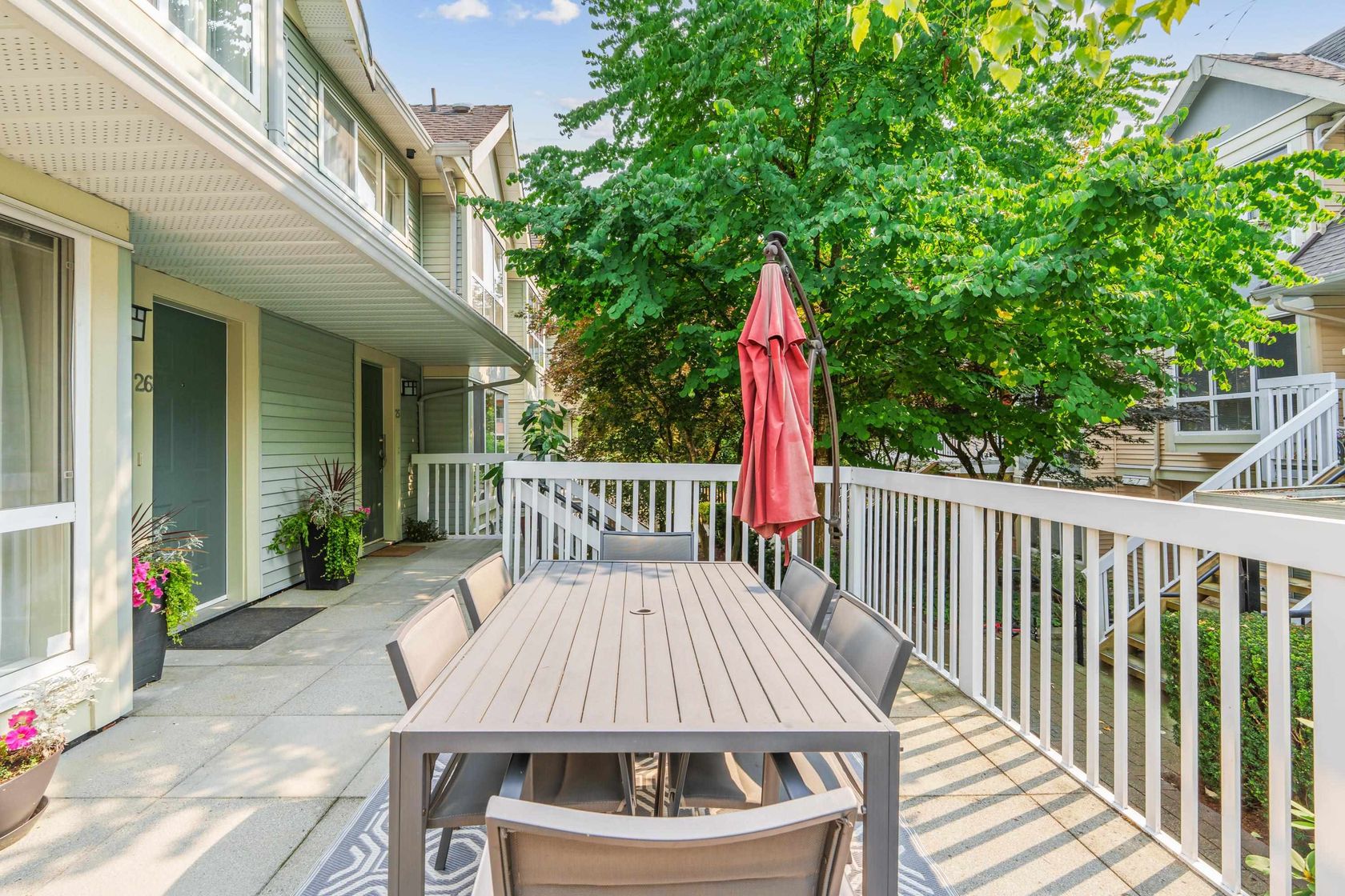 Welcome to Riverstone by Adera! This bright and airy 2-level CORNER townhome with a private rooftop deck sits on the quiet southwest side of the complex, filled with natural light. The functional layout includes an open-concept kitchen with upgraded stainless steel appliances, a convenient powder room on the main, and a spacious living area that opens to a rare large patio—available in only a few floorplans. Upstairs are two generous bedrooms and a full bath, plus access to your phenomenal private rooftop deck, perfect for relaxing or entertaining. Thoughtful updates include luxury vinyl flooring and fresh paint, making this home move-in ready. Complete with 2 parking stalls and a storage locker, Riverstone offers the perfect blend of quiet living and central convenience—just 3 blocks to the SkyTrain and minutes to schools, parks, trails, shops, and more.