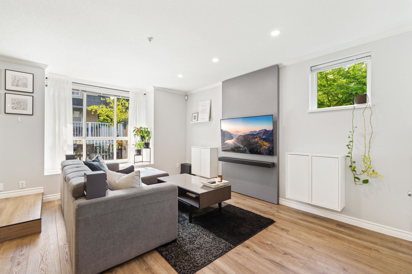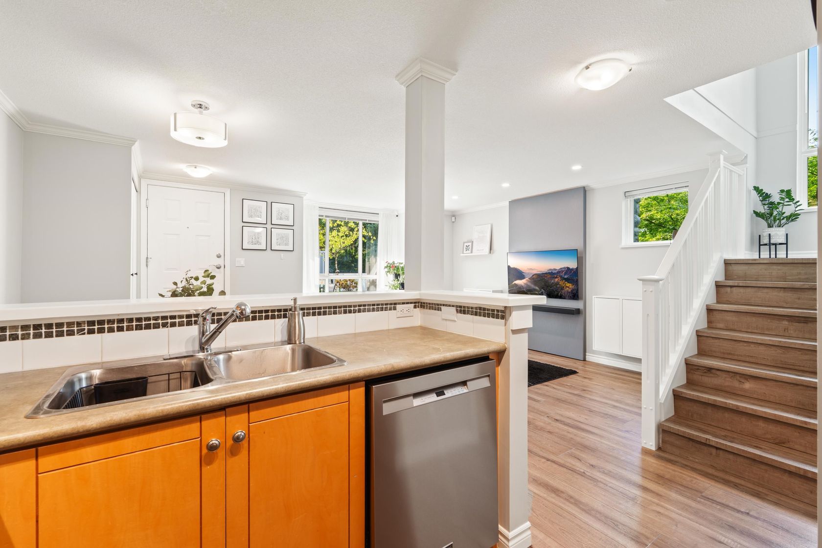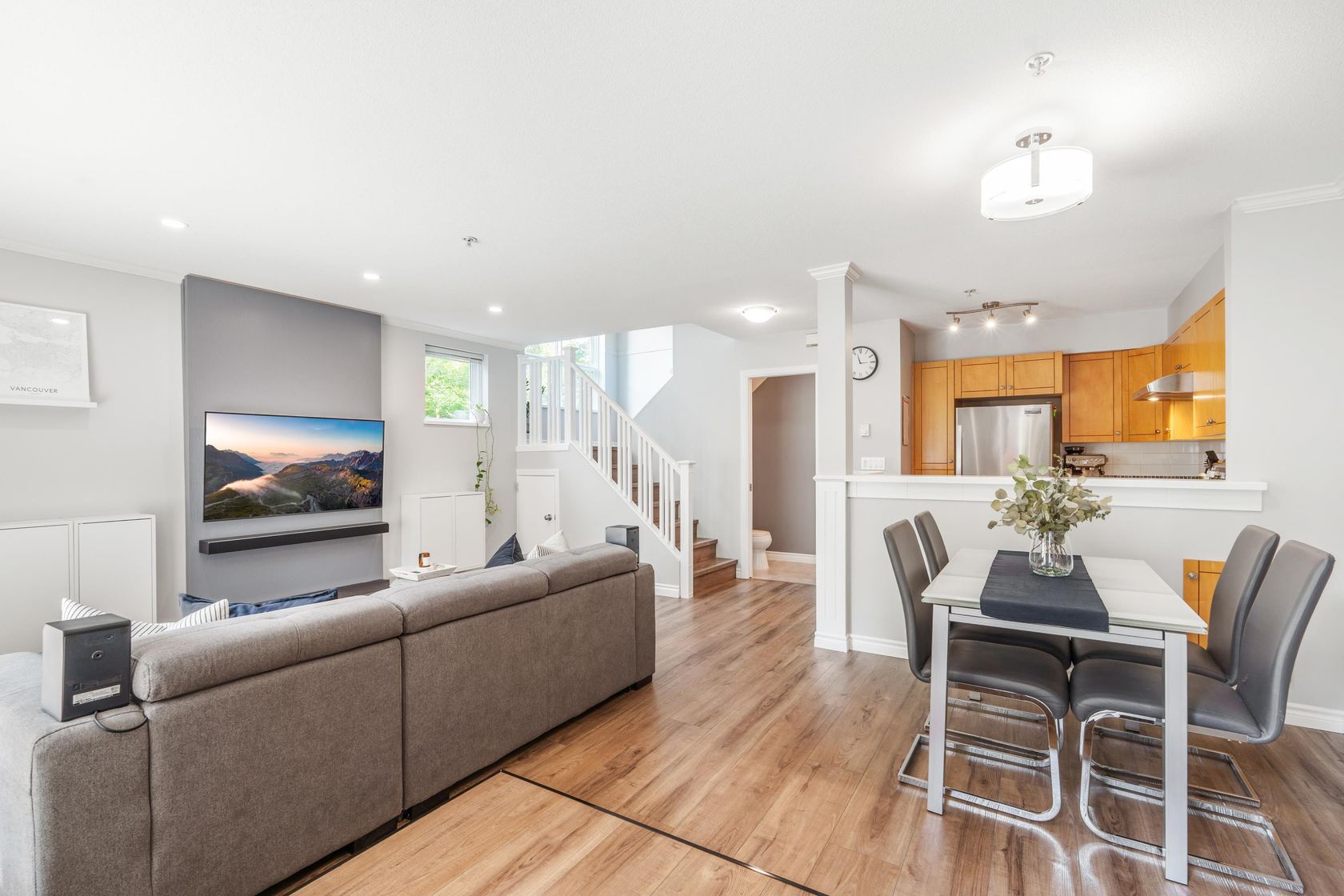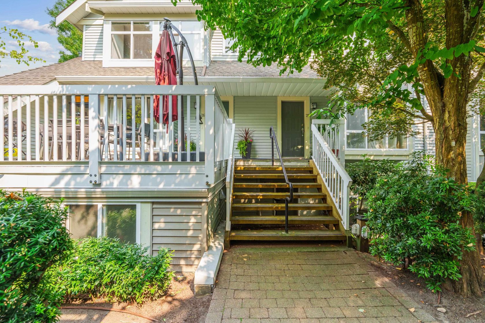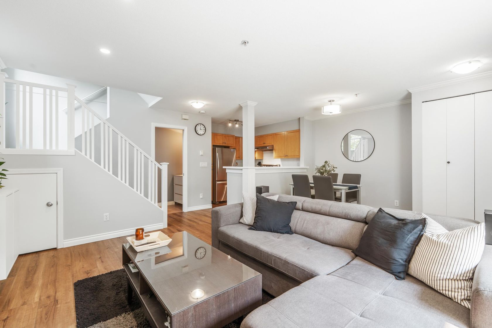Welcome to Riverstone by Adera! This bright and airy 2-level CORNER townhome with a private rooftop deck sits on the quiet southwest side of the complex, filled with natural light. The functional layout includes an open-concept kitchen with upgraded stainless steel appliances, a convenient powder room on the main, and a spacious living area that opens to a rare large patio—available in only a few floorplans. Upstairs are two generous bedrooms and a full bath, plus access to your phenomenal private rooftop deck, perfect for relaxing or entertaining. Thoughtful updates include luxury vinyl flooring and fresh paint, making this home move-in ready. Complete with 2 parking stalls and a storage locker, Riverstone offers the perfect blend of quiet living and central convenience—just 3 blocks to the SkyTrain and minutes to schools, parks, trails, shops, and more.