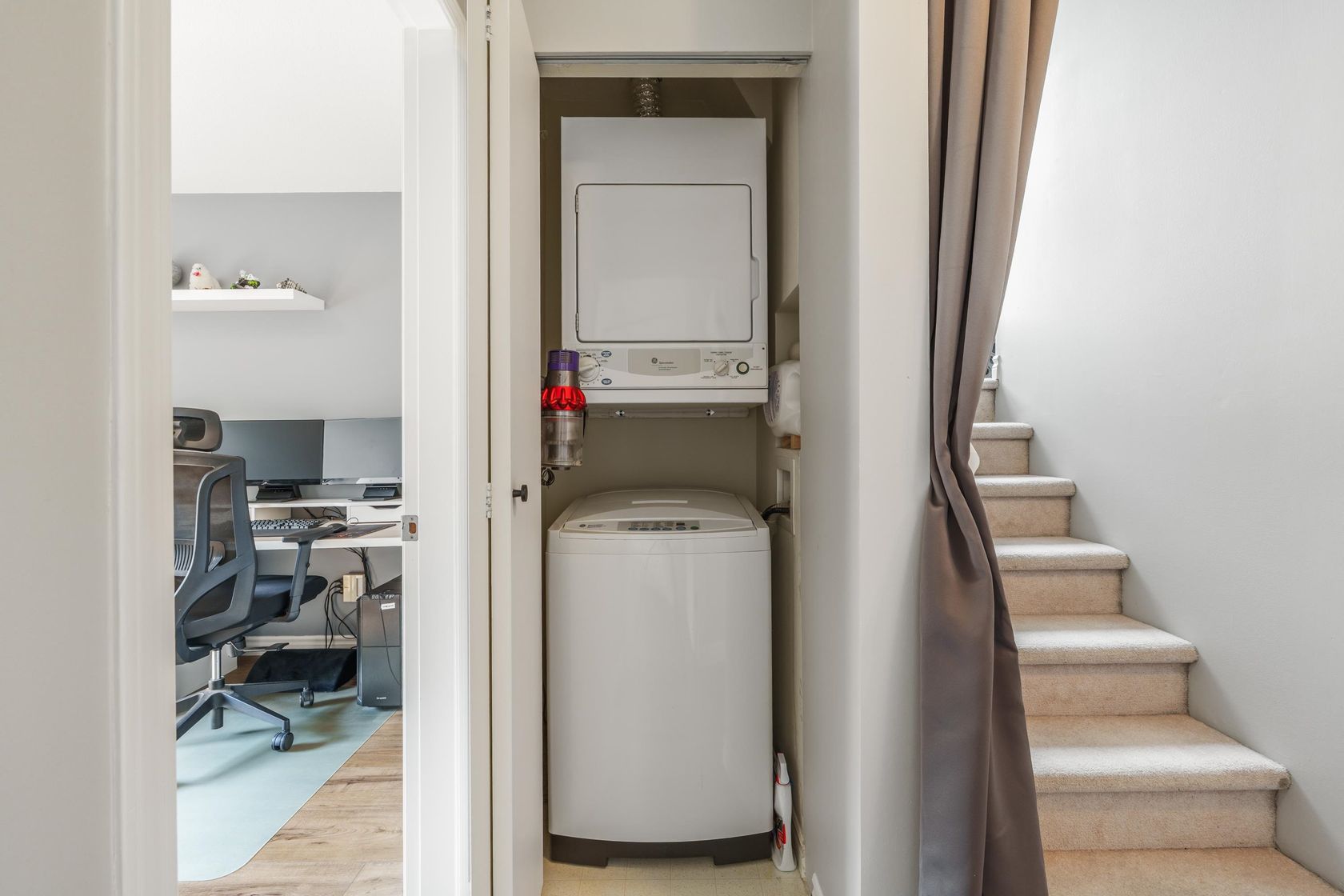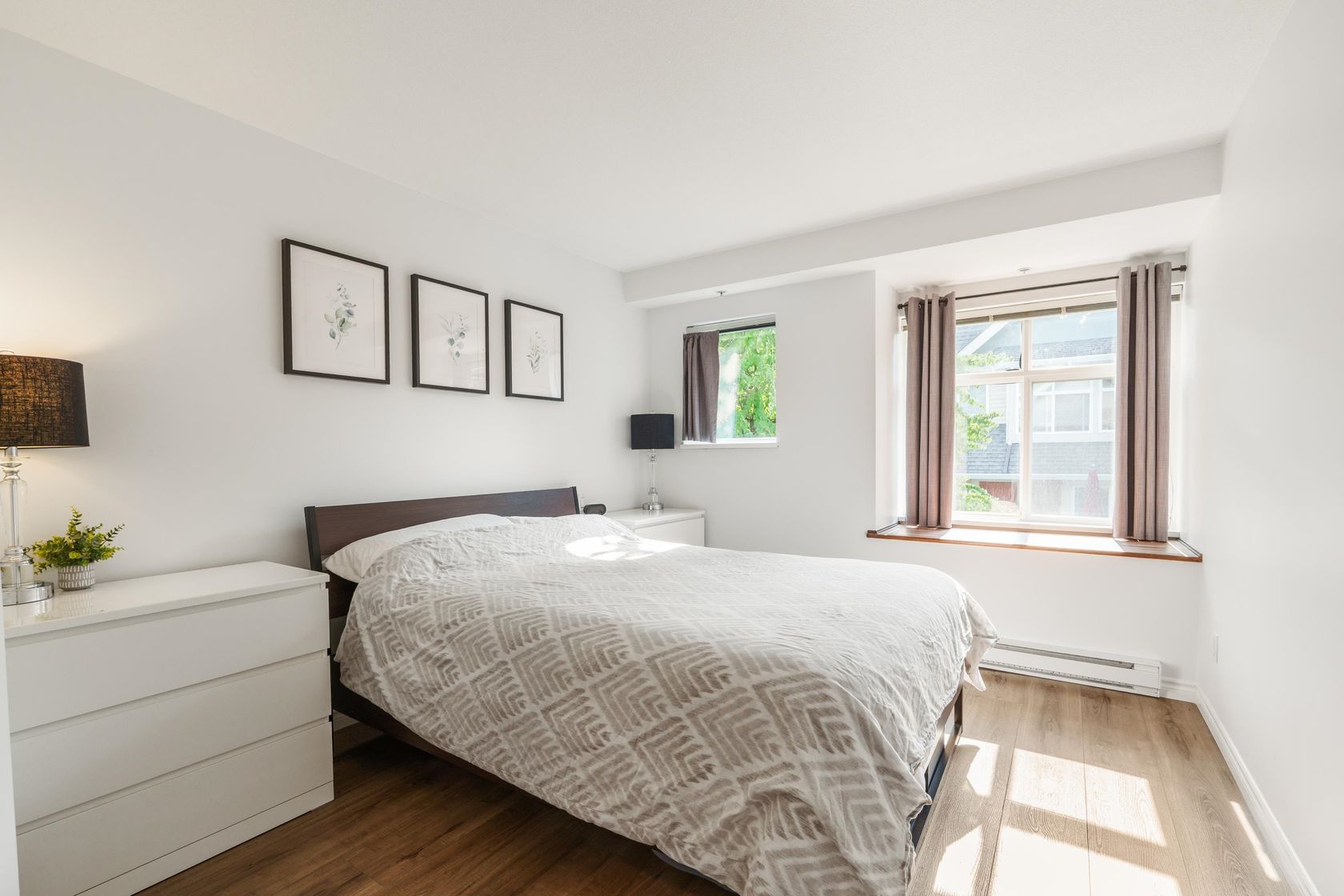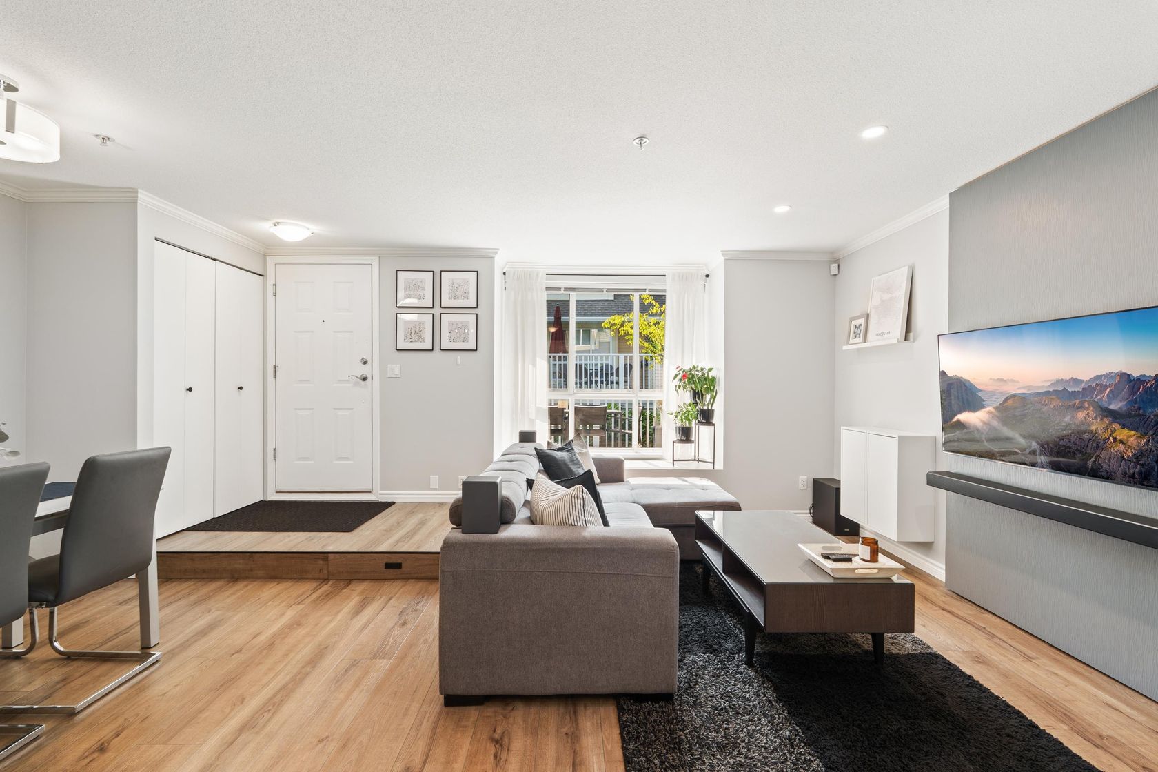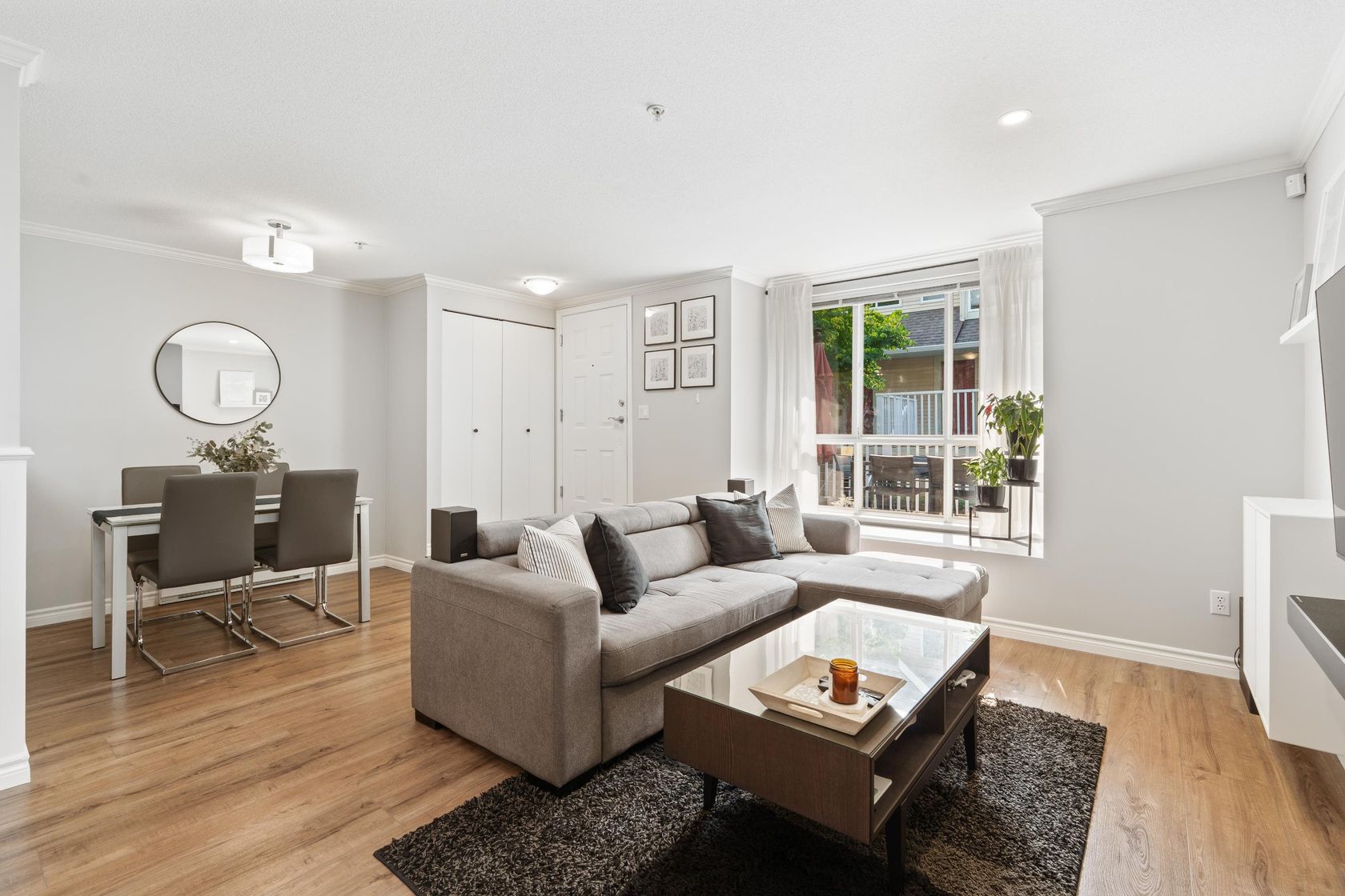 Welcome to Riverstone by Adera! This bright and airy 2-level CORNER townhome with a private rooftop deck sits on the quiet southwest side of the complex, filled with natural light. The functional layout includes an open-concept kitchen with upgraded stainless steel appliances, a convenient powder room on the main, and a spacious living area that opens to a rare large patio—available in only a few floorplans. Upstairs are two generous bedrooms and a full bath, plus access to your phenomenal private rooftop deck, perfect for relaxing or entertaining. Thoughtful updates include luxury vinyl flooring and fresh paint, making this home move-in ready. Complete with 2 parking stalls and a storage locker, Riverstone offers the perfect blend of quiet living and central convenience—just 3 blocks to the SkyTrain and minutes to schools, parks, trails, shops, and more.