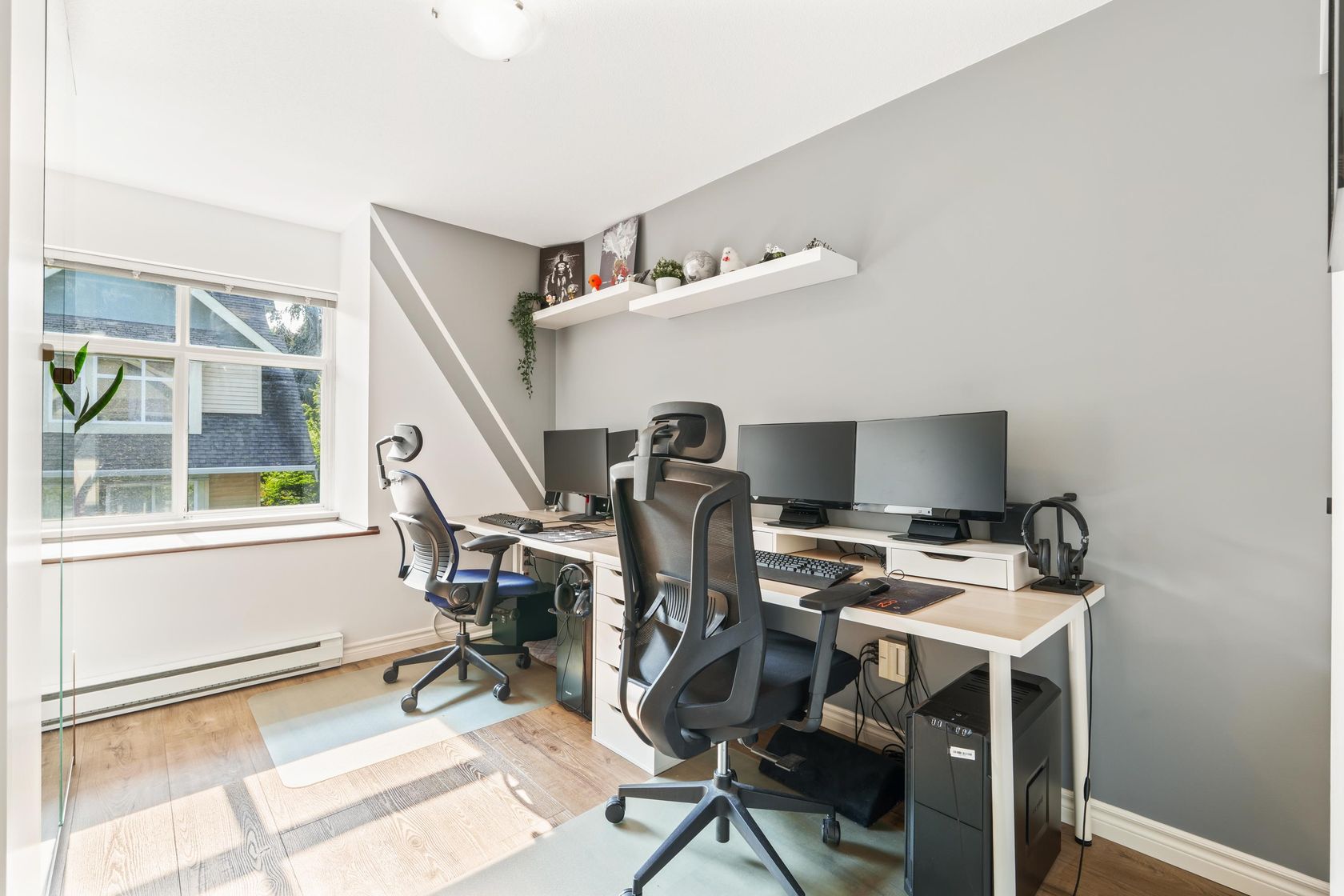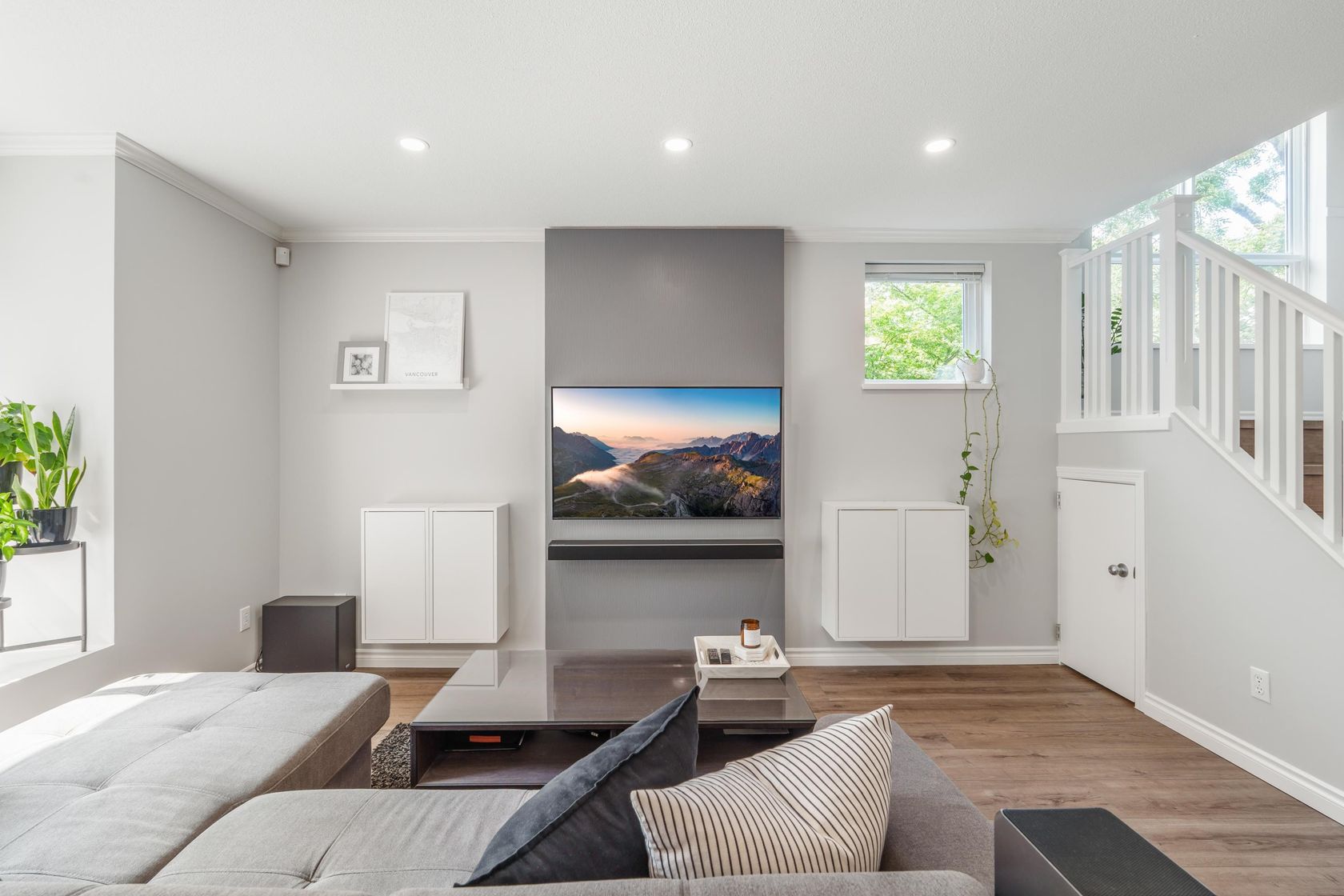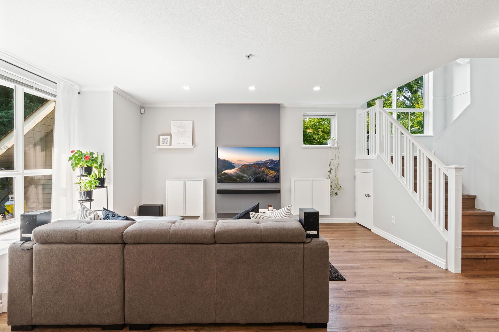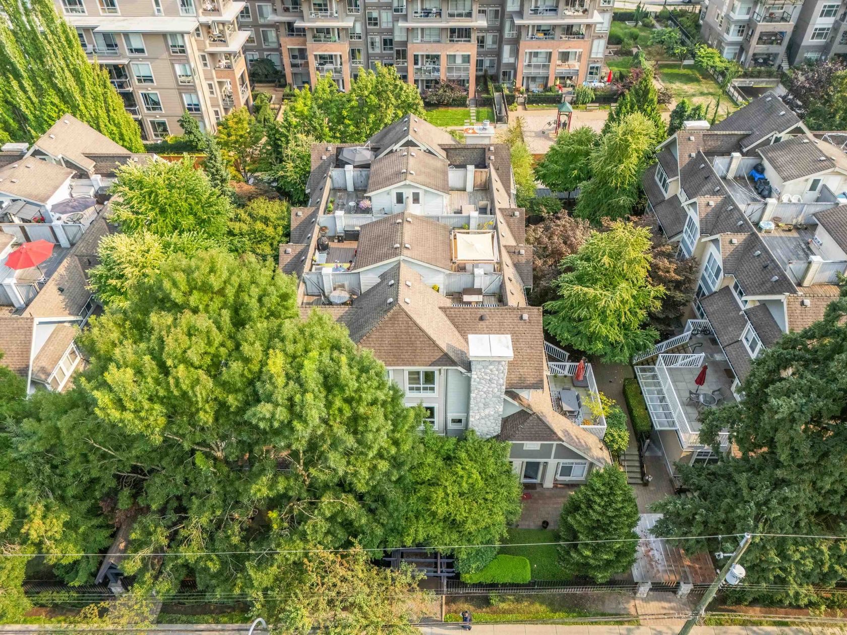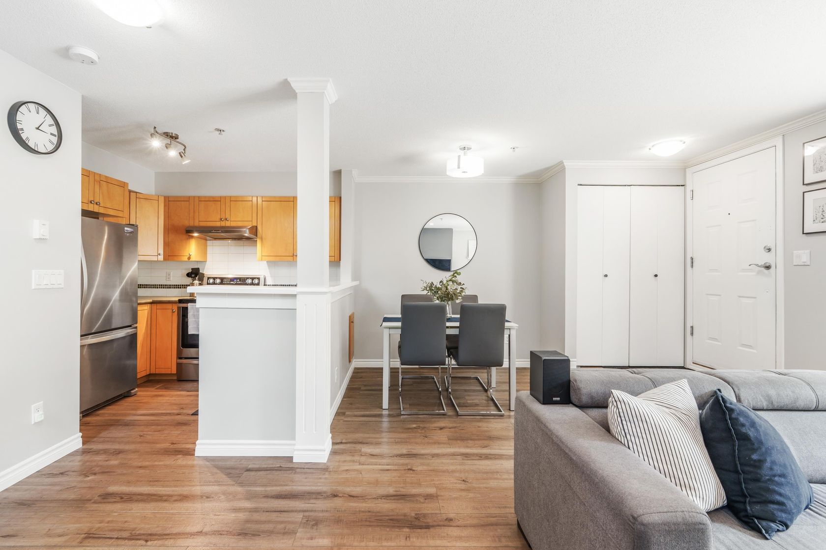 Welcome to Riverstone by Adera! This bright and airy 2-level CORNER townhome with a private rooftop deck sits on the quiet southwest side of the complex, filled with natural light. The functional layout includes an open-concept kitchen with upgraded stainless steel appliances, a convenient powder room on the main, and a spacious living area that opens to a rare large patio—available in only a few floorplans. Upstairs are two generous bedrooms and a full bath, plus access to your phenomenal private rooftop deck, perfect for relaxing or entertaining. Thoughtful updates include luxury vinyl flooring and fresh paint, making this home move-in ready. Complete with 2 parking stalls and a storage locker, Riverstone offers the perfect blend of quiet living and central convenience—just 3 blocks to the SkyTrain and minutes to schools, parks, trails, shops, and more.