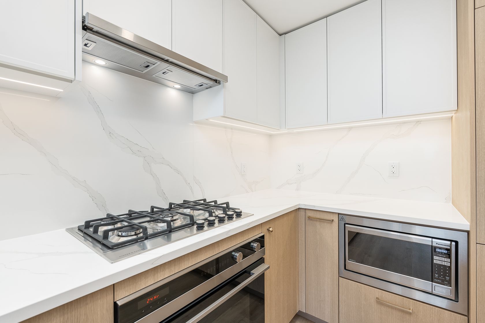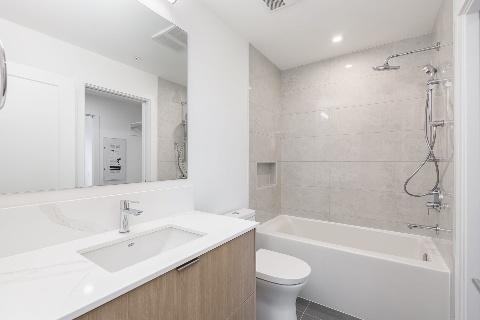 Welcome to Florin by Allaire Living! This 1-bedroom + Den, 1-bath home offers 646 sq ft of interior space plus a 90 sq ft patio with unobstructed views. Features include air conditioning, heated bathroom floor, integrated Fisher & Paykel appliances, gas cooktop, smart thermostat, and gas bib for BBQ. Comes with EV-ready underground parking. Enjoy great amenities including weight room and lounge. Located on a quiet, tree-lined street in West Coquitlam—just a 10-minute walk to Lougheed SkyTrain, Lougheed Mall, restaurants, shopping, and golf course. Small-sized dog only.