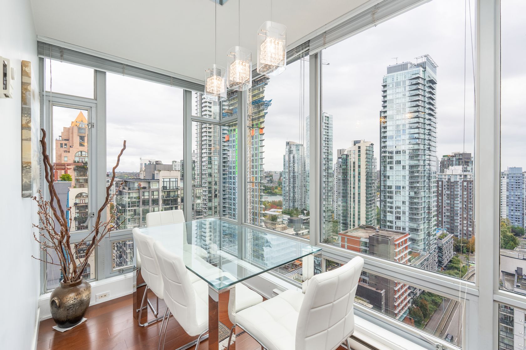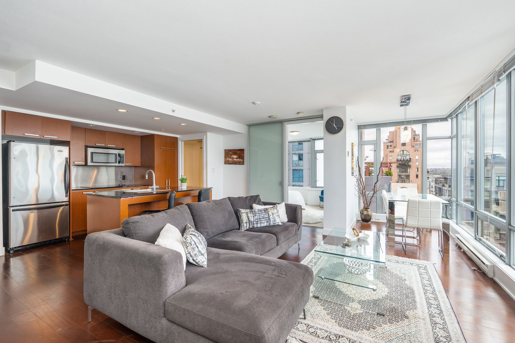 Experience luxurious urban living in this stunning 2BR/2BA + Den corner unit in Yaletown. Enjoy breathtaking ocean and city views through floor-to-ceiling windows in a spacious, light-filled layout. The modern design features hardwood floors, a gourmet kitchen with Caesarstone countertops, and updated bathrooms. The master bedroom includes a private balcony and ample closet space. *Available Immediately* *Fully-Furnished** **No Pets** **Wall Mounted Secured Storage for 2 Bicycles** **New Floors and Painting** **Amazing Amenities** **Parking Included**