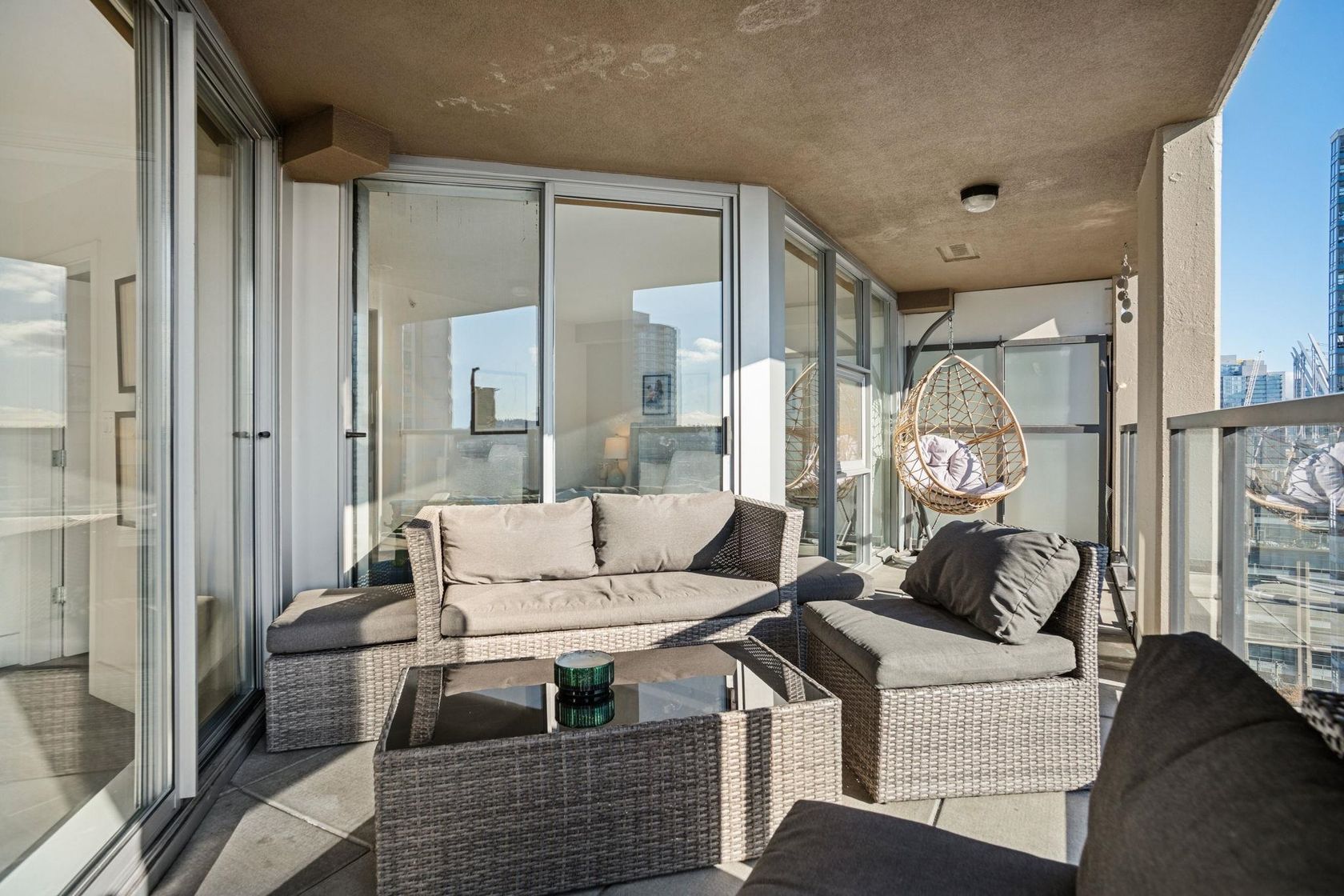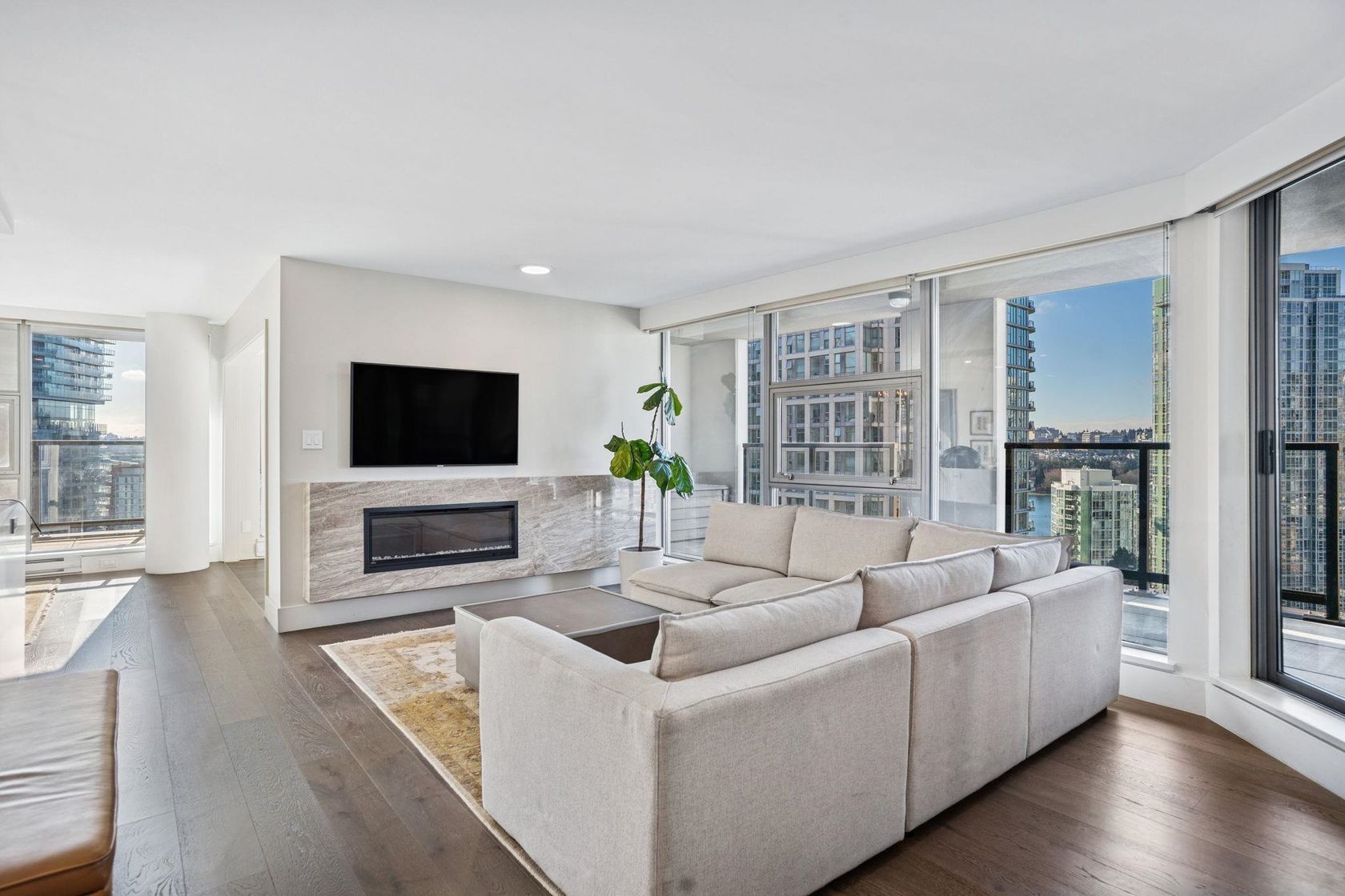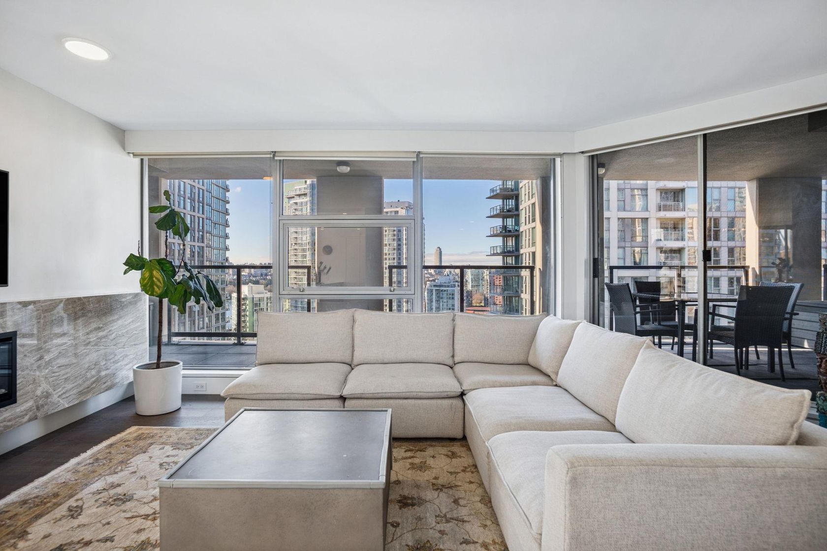 Welcome to Nova by Bosa Properties _ a rare fully renovated 1,308 sq ft corner 2 bed, 2 bath + den offering over 400 sq ft of outdoor space across two covered large balconies with stunning water and city views. A smart, no-wasted-space layout enhances everyday living. The designer renovation features a gourmet kitchen with premium Gaggenau appliances, custom cabinetry, engineered flooring, spa like bathrooms, roller blinds, tailored closets, and much more. Quality concrete construction in an unbeatable location, steps to the best of Yaletown, the Seawall, parks and marina. Amenities include a gym, jacuzzi, elegant lobby, party room, and a guest suite. Includes 2 parking stalls & 1 locker — a rare turnkey opportunity in the heart of Yaletown. Contact us today for a private tour.