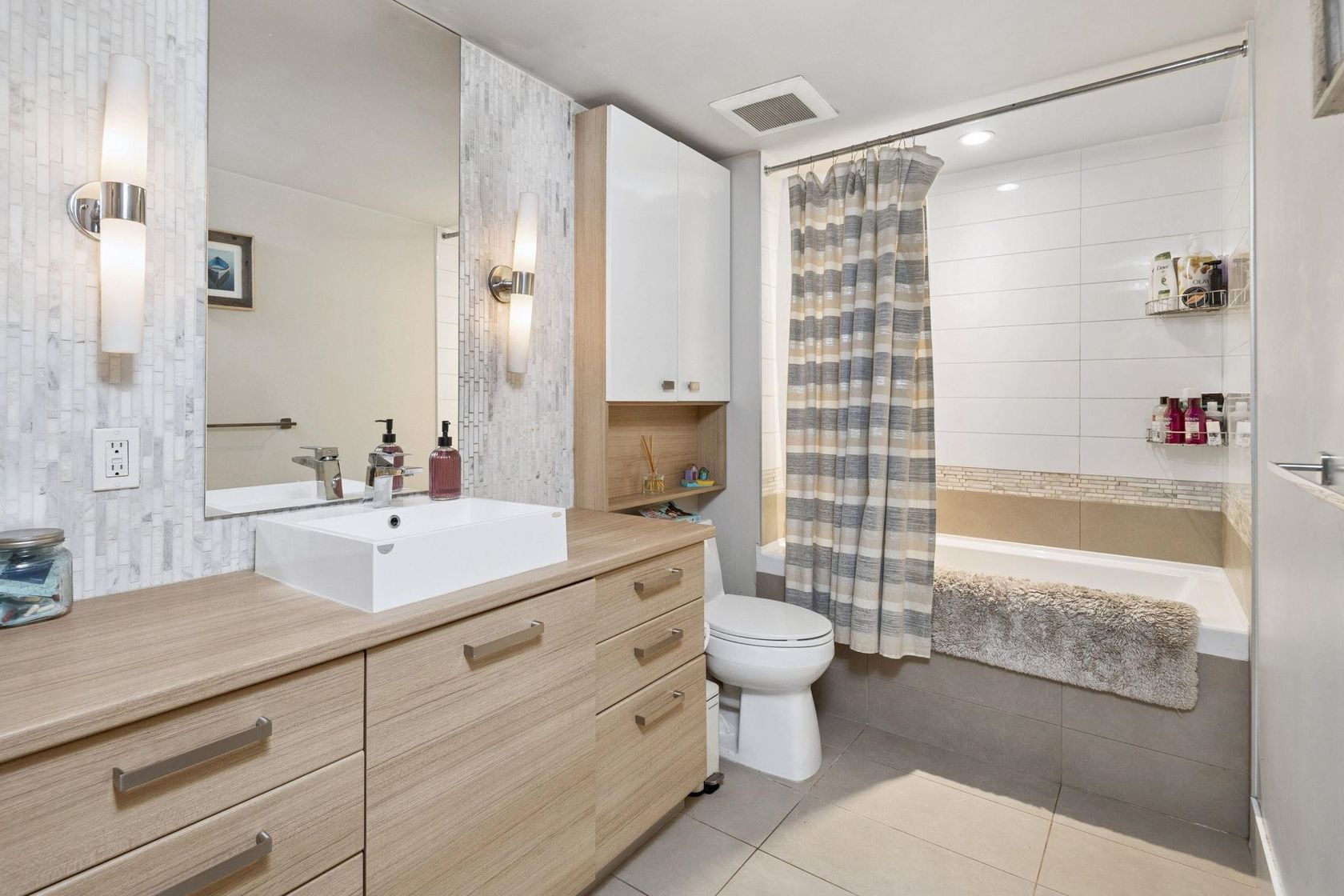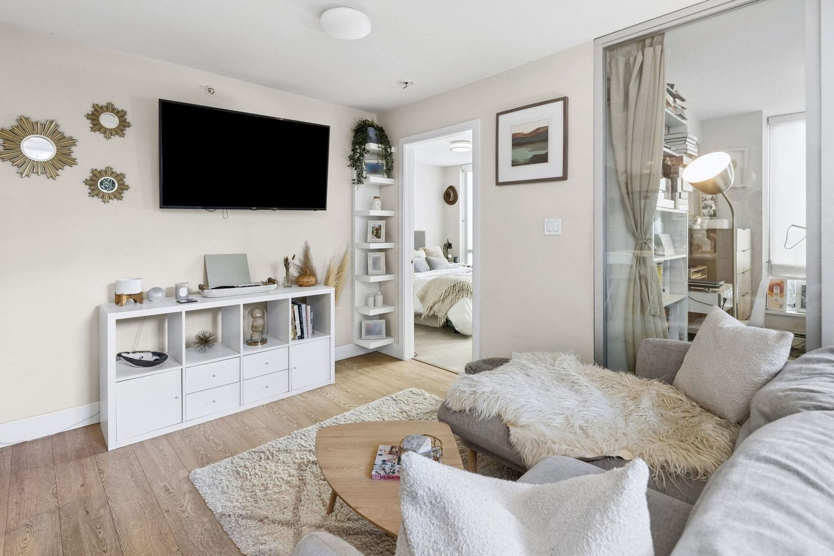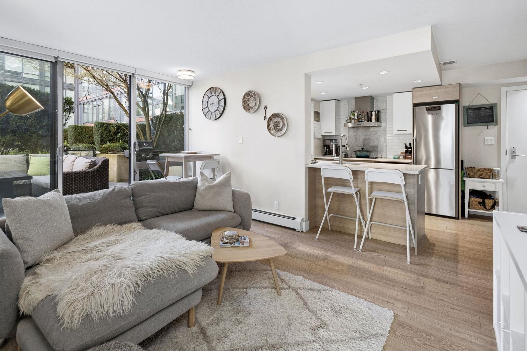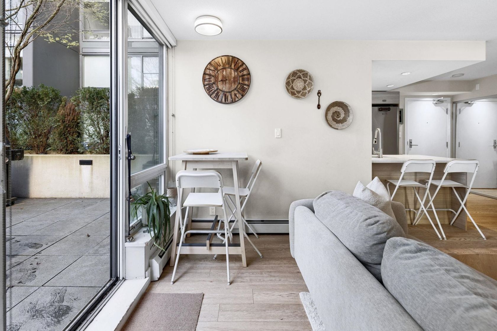 Welcome to The Residence at the West! Located in one of the most desirable neighbourhoods, Olympic Village - A False Creek waterfront community, steps to the seawall, top restaurants, shopping & more.. a one-off floorplan: open concept 1 bed and large den (could be 2nd bedroom), gourmet kitchen with premium appliance, and granite countertops, floor to ceiling windows which allows plenty of natural light, and the show stopper - a massive PRIVATE PATIO! Spa-style bathroom with rainfall shower, large flex room / pantry off the kitchen than can accommodate an office. This unit has it all! come see if this can be your next home!
